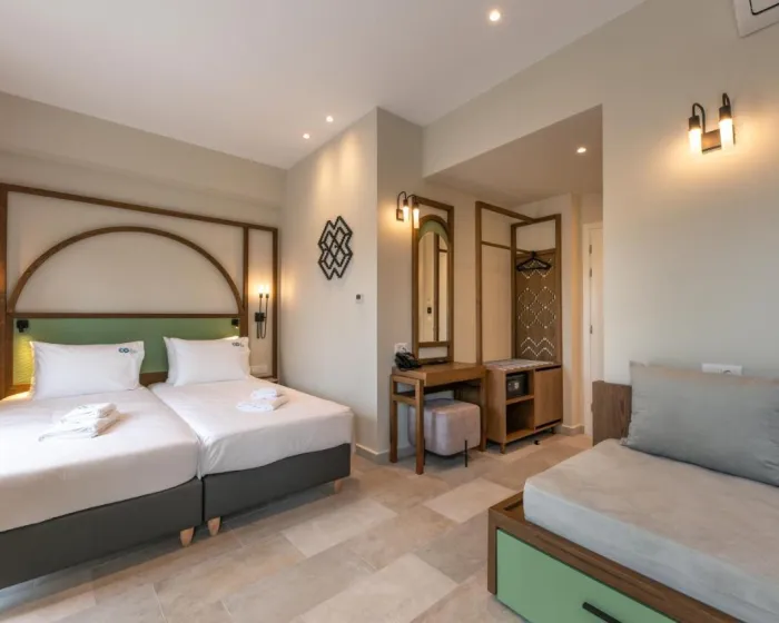 Klima uređaj i centralno grejanje osiguravaju da sobe održavaju udobne temperature. Balkon je standardno uključen u nekim sobama. Sobe imaju bračni krevet ili sofu. Dodatni kreveti mogu biti zatraženi. Sef, mini bar i radni sto su takođe dostupni. Dodatne karakteristike uključuju frižider i mini frižider. Set za peglanje je obezbeđen radi praktičnosti gostiju. Direktna telefonska linija, TV i WiFi su takođe pruženi. Fen za kosu i telefon su dostupni u kupatilima, koja su opremljena tušem i kadom. Za dodatnu udobnost u kupatilima, gostima se nude kozmetički proizvodi. Gosti takođe mogu rezervisati sobe prilagođene osobama sa invaliditetom sa pristupačnim kupatilima. Odmor selo ima porodične sobe i sobe za nepušače.