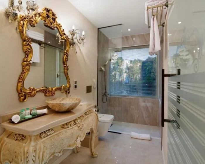 Klima uređaj i centralno grejanje osiguravaju da sobe održavaju prijatne temperature. Gosti mogu uživati u pogledu na vrt sa balkona ili terase. Sobe imaju bračni krevet, krevet queen size, krevet king size ili sofu. Dodatni kreveti mogu biti zatraženi. Sef, minibar i radni sto su takođe dostupni. Pegla je obezbeđena radi praktičnosti gostiju. Telefon, televizor sa satelitskim / kablovskim kanalima i WiFi su takođe dostupni. Papuče su uključene. Fen za kosu i bade mantili su dostupni u kupatilima, koja su opremljena tušem i kadom. Kozmetički proizvodi i izbor peškira pružaju dodatnu udobnost u kupatilima. Hotel ima porodične sobe i sobe za nepušače.