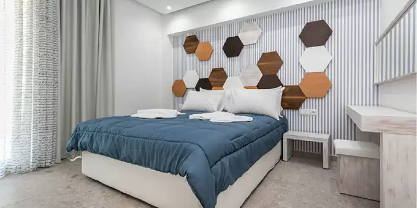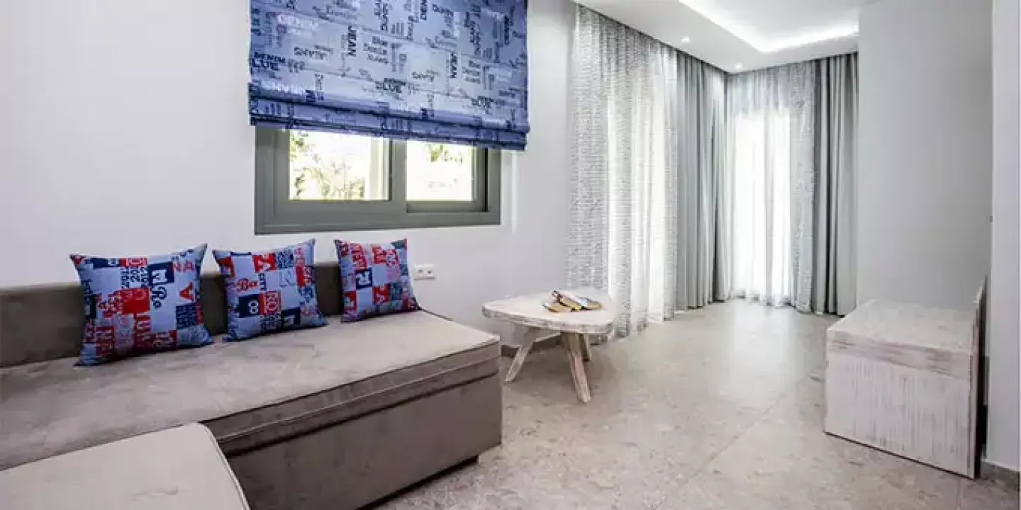 Gostima su na raspolaganju moderno uređeni apartmani koji sadrže klima uređaj, besplatan bežični internet, flat-screen televizor i opremljenu čajnu kuhinju sa frižiderom i pločom za kuvanje. Svaka jedinica ima sopstveno kupatilo sa tušem i fenom za kosu, a većina apartmana ima balkon ili terasu sa pogledom na more ili uređeno dvorište.