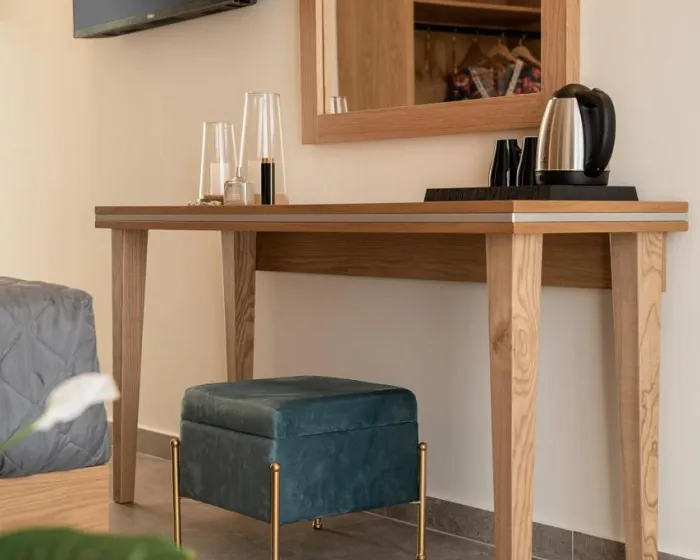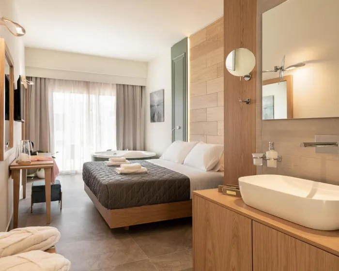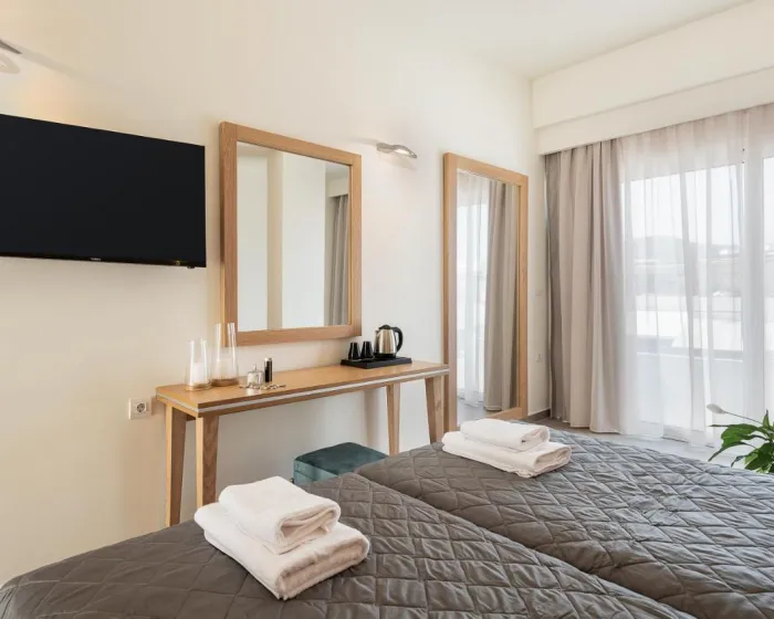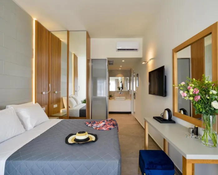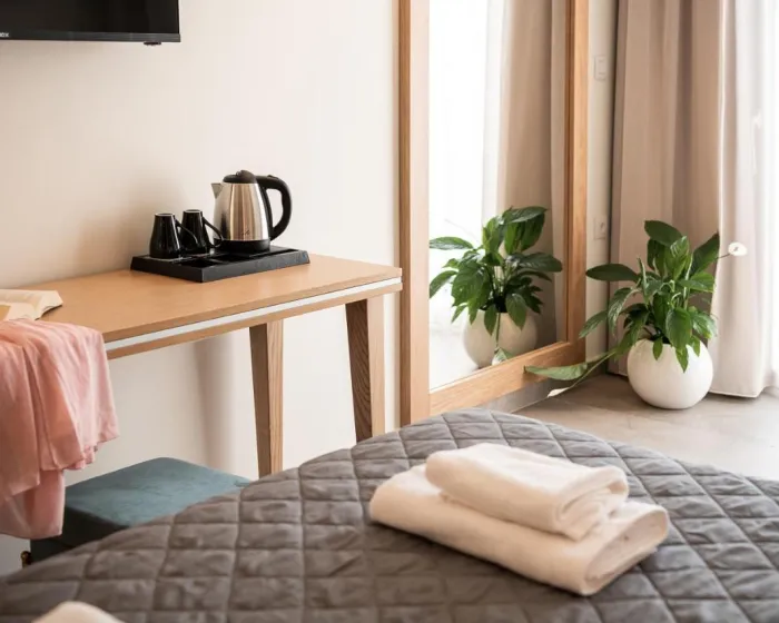 Klima uređaj i centralno grejanje osiguravaju da sobe održavaju udobnu temperaturu. Gosti mogu uživati u pogledu na vrt sa balkona ili terase. Sobe imaju bračni krevet, krevet queen size ili sofu na razvlačenje. Na raspolaganju su i sef i radni sto. Dodatni sadržaji uključuju frižider i aparat za čaj/kafu. Tu je takođe i pegla i sušilica za veš. Telefon, satelitska televizija i WiFi pružaju sve što je potrebno za udoban odmor. Papuče su uključene. Fen za kosu i bade mantili su dostupni u kupatilima, opremljenim tuš kabinom. Kao poseban dodatak, kupatila su opremljena kozmetičkim proizvodima i izborom peškira. Hotel ima porodične sobe i sobe za nepušače.