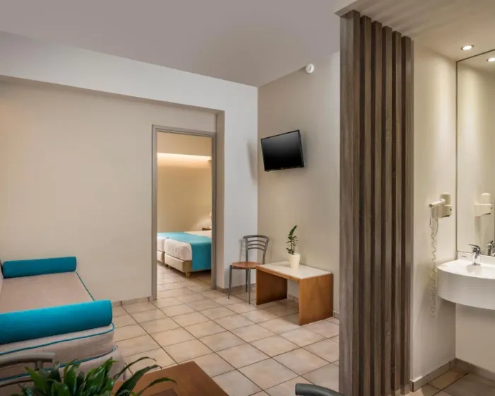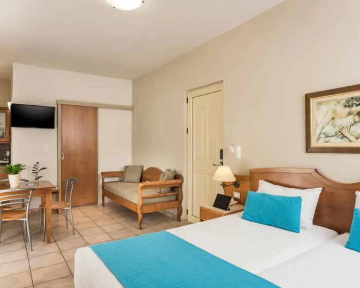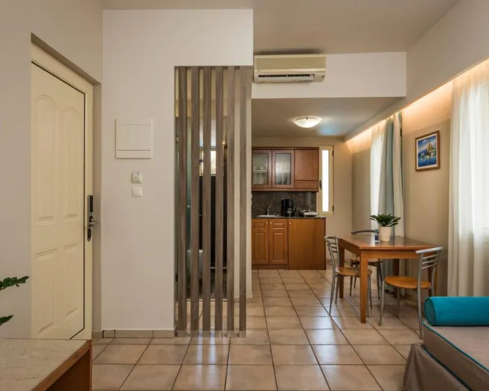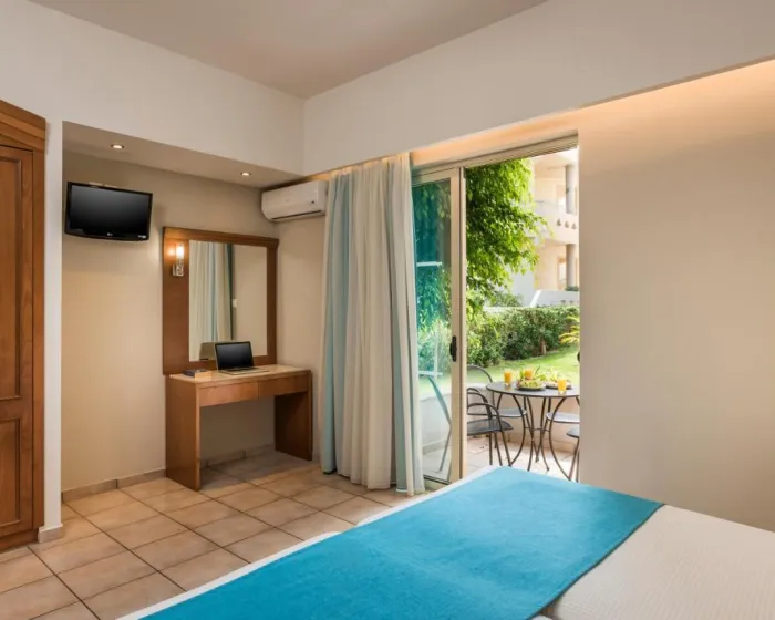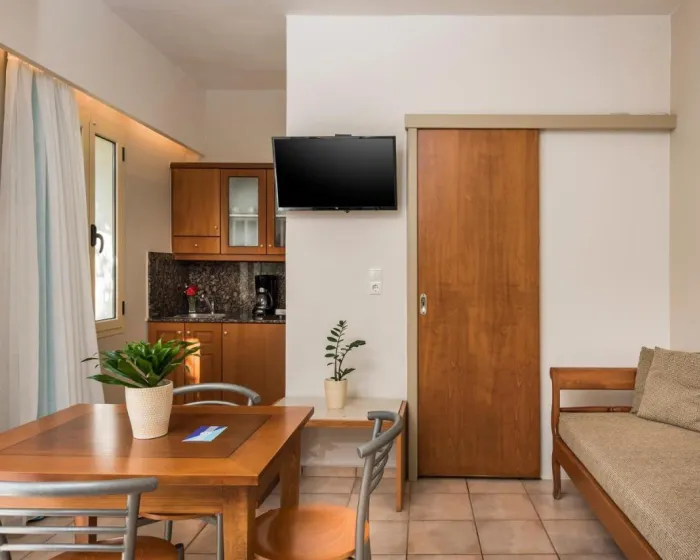 Sobe imaju kuhinju i kupatilo, a klima uređaj osigurava pravilnu temperaturu. Gosti mogu uživati u pogledu na vrt sa balkona ili terase. Sobe imaju bračni krevet, krevet queen size ili sofu na razvlačenje. Dostupne su odvojene spavaće sobe. Dodatni kreveti mogu se zatražiti. Gosti mogu bezbedno čuvati dragocenosti u sefu uz doplatu. Kuhinjica dolazi sa frižiderom, mini frižiderom i aparatom za kafu/čaj. Dostupna je pegla za pantalone radi gostovog udobnosti. Takođe su obezbeđeni telefon, TV, radio i WiFi (bez dodatne naknade). Papuče su uključene. Fen za kosu i telefon su dostupni u kupatilima, opremljenim tušem i kadom. Za dodatnu udobnost u kupatilima, gostima se nude kozmetički proizvodi. Hotel ima porodične sobe i sobe za nepušače.