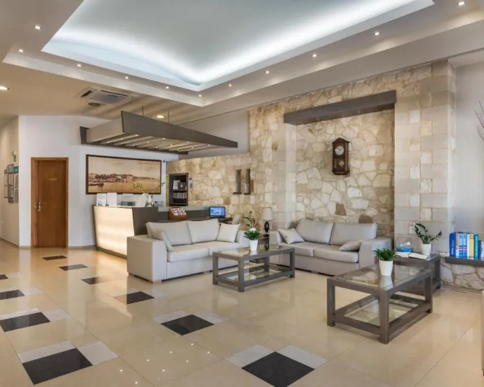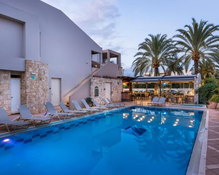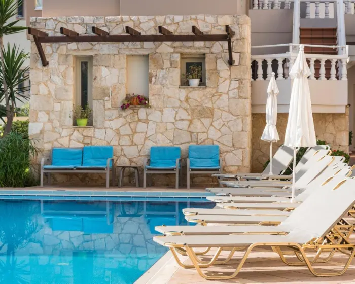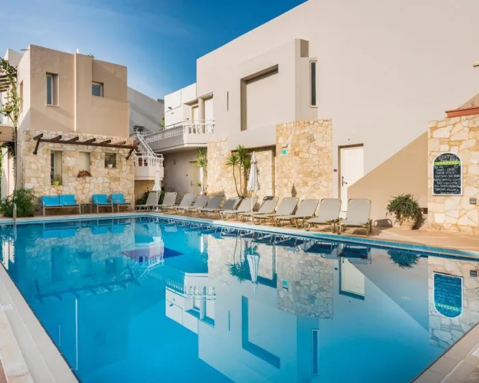 Centralno lociran u Agia Marini, ovaj smeštaj sa sopstvenim obezbeđenjem je direktno na peščanoj plaži.