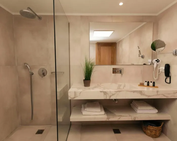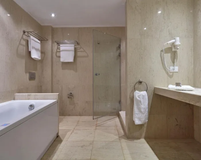 Sobe su opremljene klima uređajem i centralnim grejanjem. Gosti mogu da se opuste i uživaju u pogledu na more sa balkona ili privatne terase nekih soba. Sobe imaju bračni krevet i kauč na izvlačenje. Dodatni kreveti se mogu zatražiti. Takođe su dostupni sef, minibar i radni sto. Dodatni sadržaji uključuju frižider, mini frižider i aparat za kafu/čaj. Pegla je obezbeđena radi gostovog udobnosti. Takođe se obezbeđuju direktno biranje telefona, televizor sa satelitskim/kablovskim kanalima, radio i WiFi (bez dodatnih troškova). Papuče su uključene. Fen za kosu i bade mantili su dostupni u kupatilima, koja su opremljena tušem i kadom. Za dodatnu udobnost u kupatilima, gostima su ponuđeni kozmetički proizvodi. Mogu se rezervisati sobe prilagođene osobama sa invaliditetom. Hotel ima porodične sobe, sobe za nepušače i sobe za pušače.