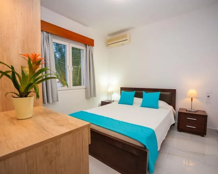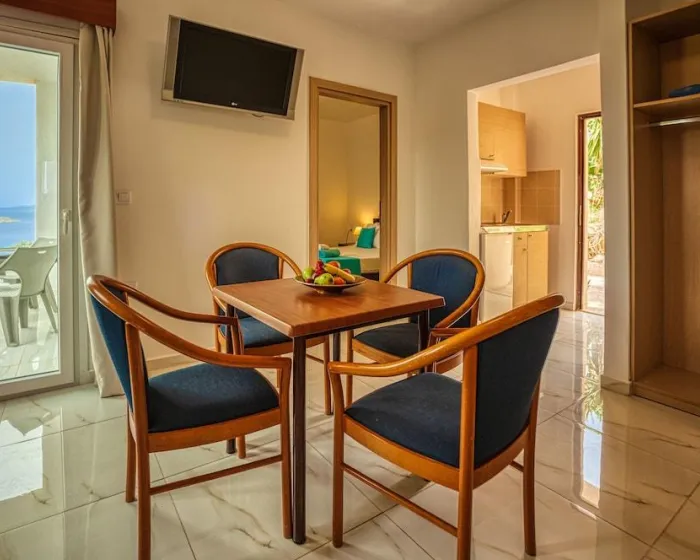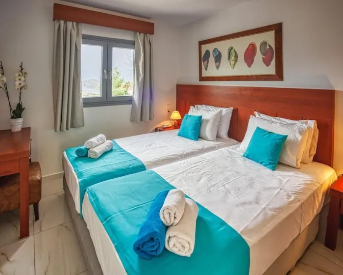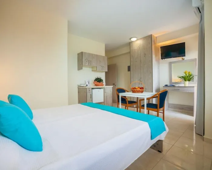 Sobe uključuju klima uređaj, dnevnu sobu, kuhinju i kupatilo. Većina jedinica ima balkon sa pogledom na more, gde gosti mogu da se opuste i uživaju. U sobama se nalazi bračni krevet, francuski ležaj ili sofa na razvlačenje. Dostupne su odvojene spavaće sobe. Kreveti za decu i dodatni ležajevi se mogu zatražiti za mlađe goste. Takođe postoje mini bar i radni sto ili, uz dodatnu naknadu, sef. Za goste koji žele da sami pripremaju obroke, postoji dobro opremljena kuhinjica sa frižiderom, mini frižiderom, rešoom i čajnom/kafom mašinom. Satelitska televizija, radio i WiFi (bez dodatne naknade) su takođe obezbeđeni. Kupatila imaju tuš i kadu. Fen za kosu, bade mantili i telefon su dostupni za svakodnevnu upotrebu. Kao poseban dodatak, kupatila su takođe opremljena kozmetičkim proizvodima i izborom peškira. Apartmanski hotel ima porodične sobe i sobe za nepušače.