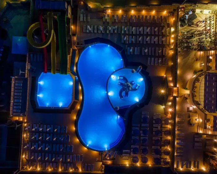 Napunjeni umirujućom morskom vodom, unutrašnji i spoljni bazeni osiguravaju udobno plivanje. Tu je takođe i dečji bazen. Tobogan vodeni garantuje puno zabave kako za mlade tako i za stare, a bazen bar nudi hranu i osvežavajuća pića. Ležaljke i suncobrani na terasi pozivaju goste da se opuste. Širok spektar aktivnosti koje se nude u hotelu garantuje da će svakog dana biti nešto novo za raditi, uključujući tenis, boćanje, odbojku, ludu mini golf i jahanje. Sa jedrenjem na dasci, skijanjem na vodi, ronjenjem i aquafit-om dostupnim, ljubitelji vodenih sportova će imati šta da biraju. Hotel nudi brojne unutrašnje sportove, uključujući teretanu, stoni tenis, badminton, jogu, callisthenics, aerobik, pilates i stoni fudbal ili, uz naknadu, bilijar. Postoji wellness zona sa spa centrom i hamamom i, uz dodatnu naknadu, saunom i parnom kupkom. Dodatne zabavne aktivnosti uključuju program zabave, dečiji klub, dečiji disko, živu muziku, plesni klub i noćni klub.