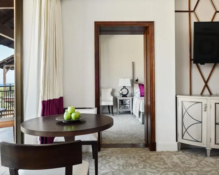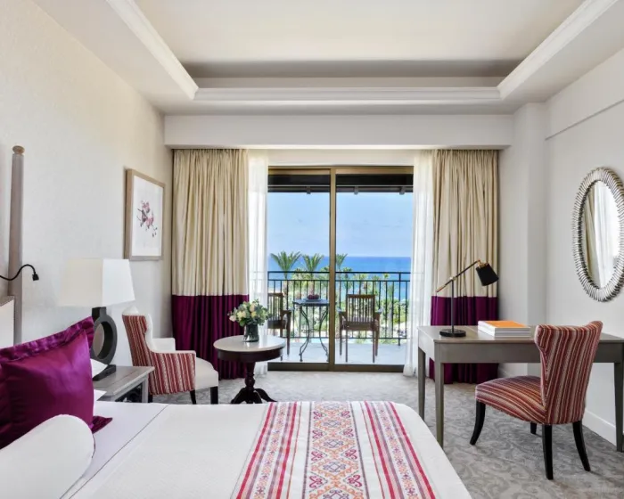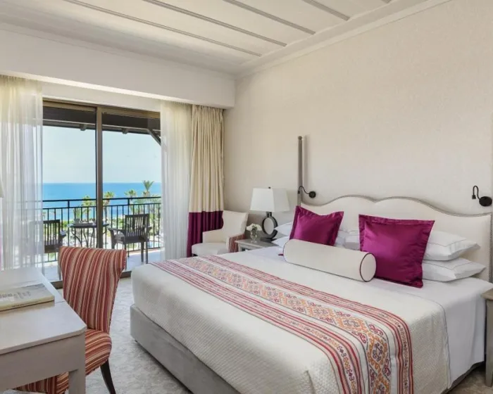 Sobe su opremljene klima uređajem i centralnim grejanjem. Gosti mogu da se opuste i uživaju u pogledu na more sa balkona ili privatne terase nekih soba. Sobe imaju bračni krevet, krevet queen size, krevet king size ili kauč na razvlačenje. Dostupne su odvojene spavaće sobe. Kreveti za decu i pomoćni kreveti mogu se zatražiti za mlađe goste. Tu je takođe sef i radni sto ili, uz doplatu, minibar. Direktni birani telefoni, televizor sa satelitskim/ kablovskim kanalima, radio i WiFi (bez dodatne naknade) takođe su obezbeđeni. Gosti će takođe pronaći papuče u svojim sobama. Kupatila su opremljena tušem i kadom. Fen za kosu, ogledalo za šminkanje i bade mantil dostupni su za svakodnevnu upotrebu. Mogu se rezervisati sobe prilagođene osobama sa invaliditetom. Hotel ima porodične sobe i sobe za nepušače.