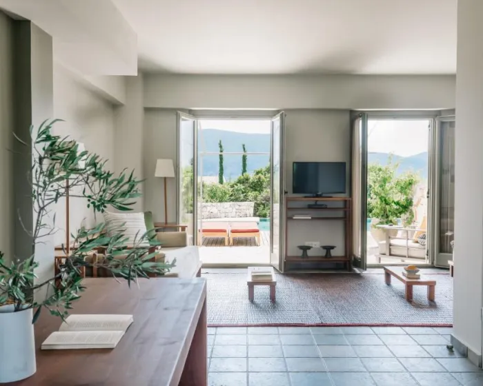Emelisse Nature Resort Fiskardo se nalazi iznad zaliva Emplisis, u blizini slikovite luke i ribarskog sela Fiskardo, do kog se može stići pešice za najviše 15 minuta. U Fiskardu se nalaze brojne prodavnice, barovi, restorani i stanica javnog prevoza, dok je plaža udaljena oko 4 minuta hoda. Glavni grad Kefalonije, Argostoli, udaljen je oko 50 km, a jezero Melisani oko 40 km. Aerodrom Kefalonija se nalazi na otprilike sat vremena vožnje, dok je luka Sami udaljena oko 50 minuta.