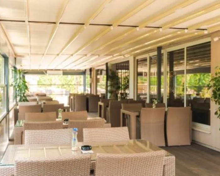 Hotel se nalazi okružen palmama i borovima, nadomak maloj plaži smeštenoj u srcu Ulcinja.