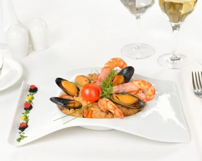 Gostima su na raspolaganju restoran, kafić i bar. U ponudi su polupansion i pun pansion. Svakodnevno se služe doručak i večera. Na zahtev su dostupni specijalni obroci, uključujući dijetalna jela i posebne gastronomske opcije.