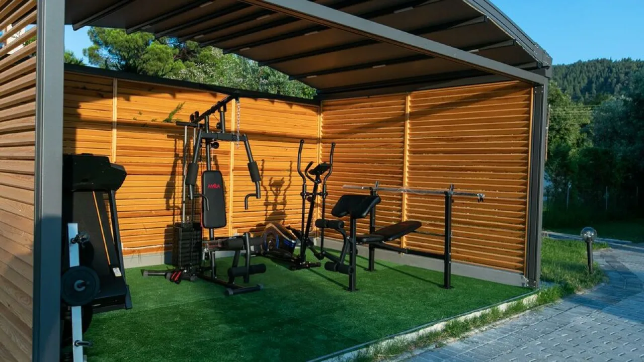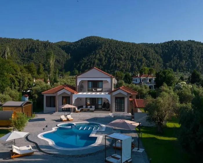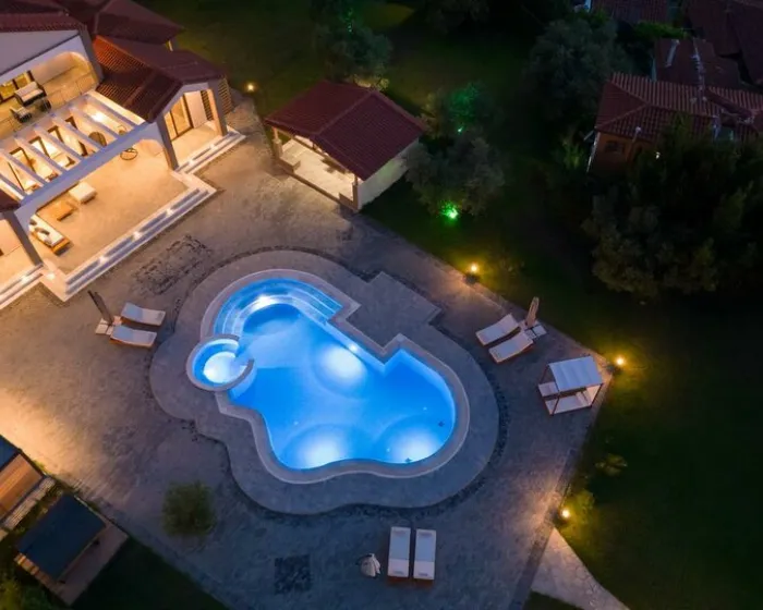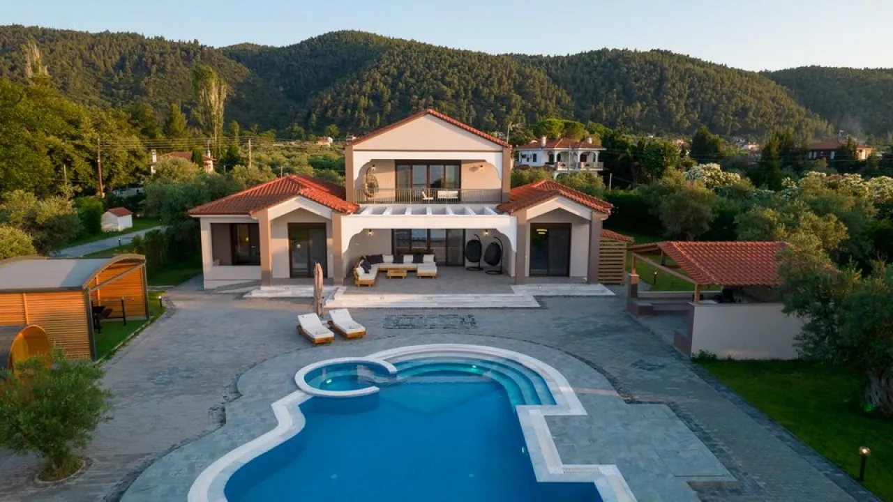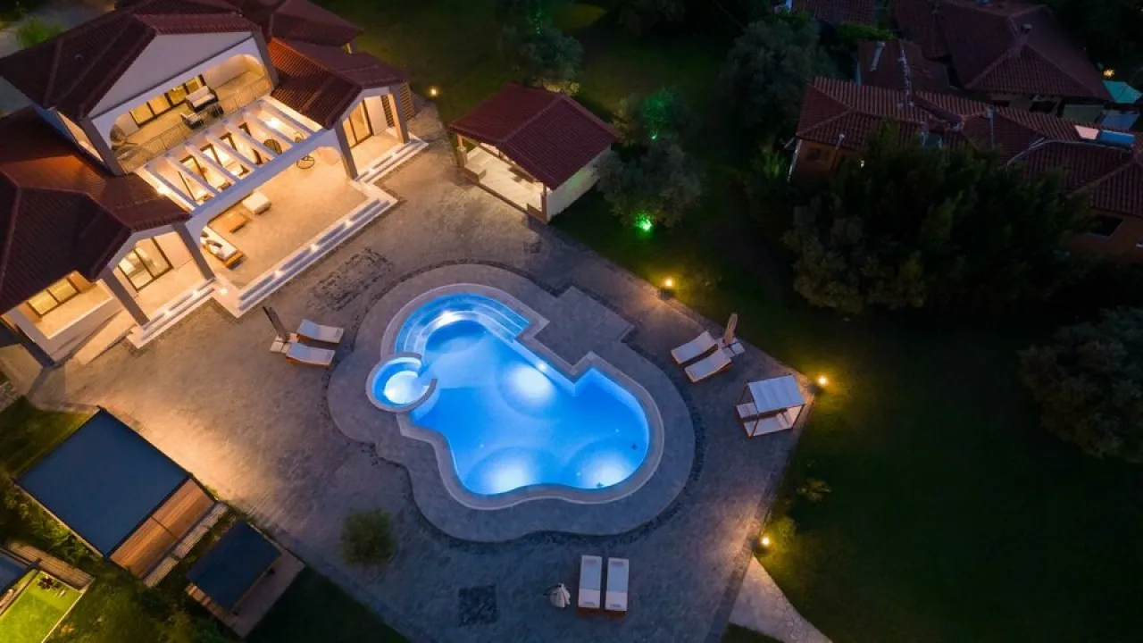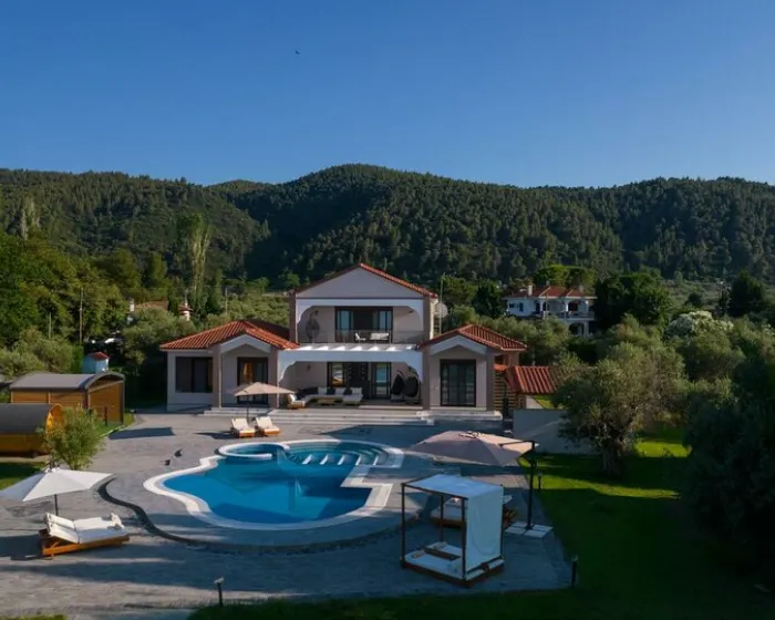 Kupanje u bazenu natopljenom suncem je savršen način da započnete dan. Sa đakuzijem i otvorenim tušem na raspolaganju, kao i raskošnim ležaljkama i puno baštenskog prostora za uživanje, potpuna relaksacija je pred vašim pragom, pre nego što ste išli nekoliko koraka do bele peščane plaže ispod. Veliki otvoreni prostor takođe nudi natkrivenu trpezariju sa roštiljem, tako da cela porodica može zajedno da uživa u nezaboravnom obroku nakon dana provedenog u istraživanju veličanstvenog zaliva Vurvuru. Terasa takođe pruža romantično mesto za čašu vina dok uživate u neverovatnom zalasku sunca na Halkidikiju.