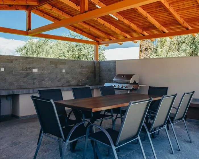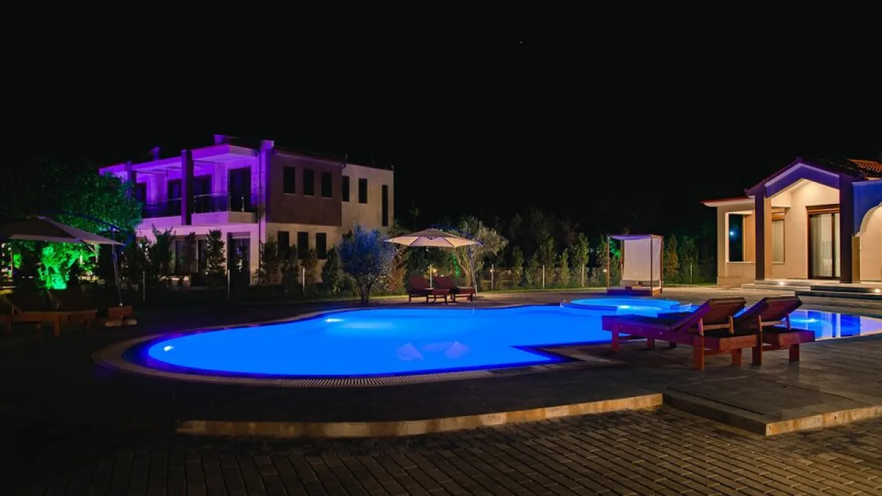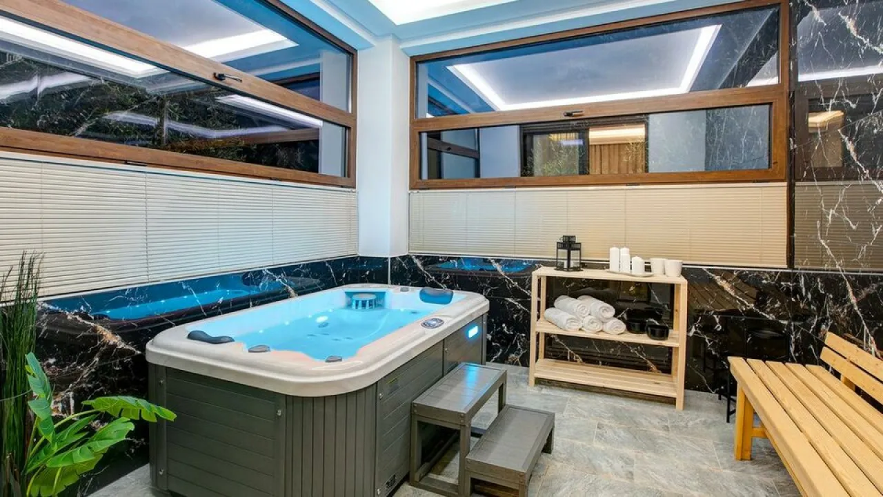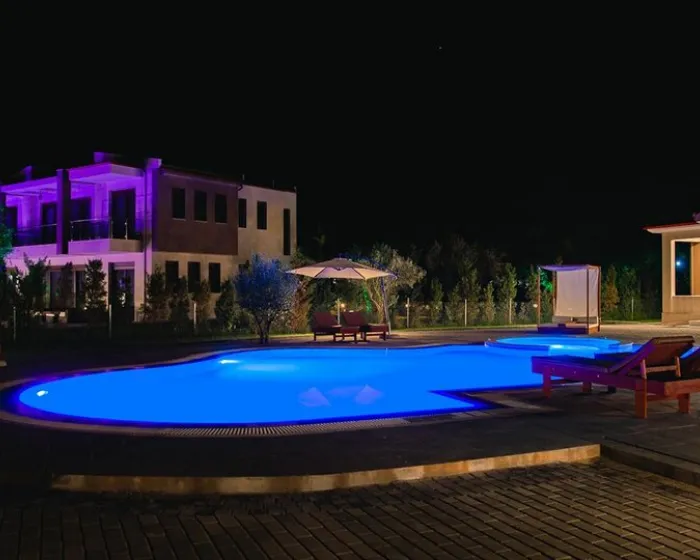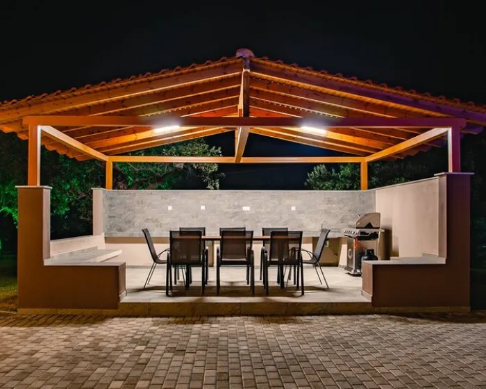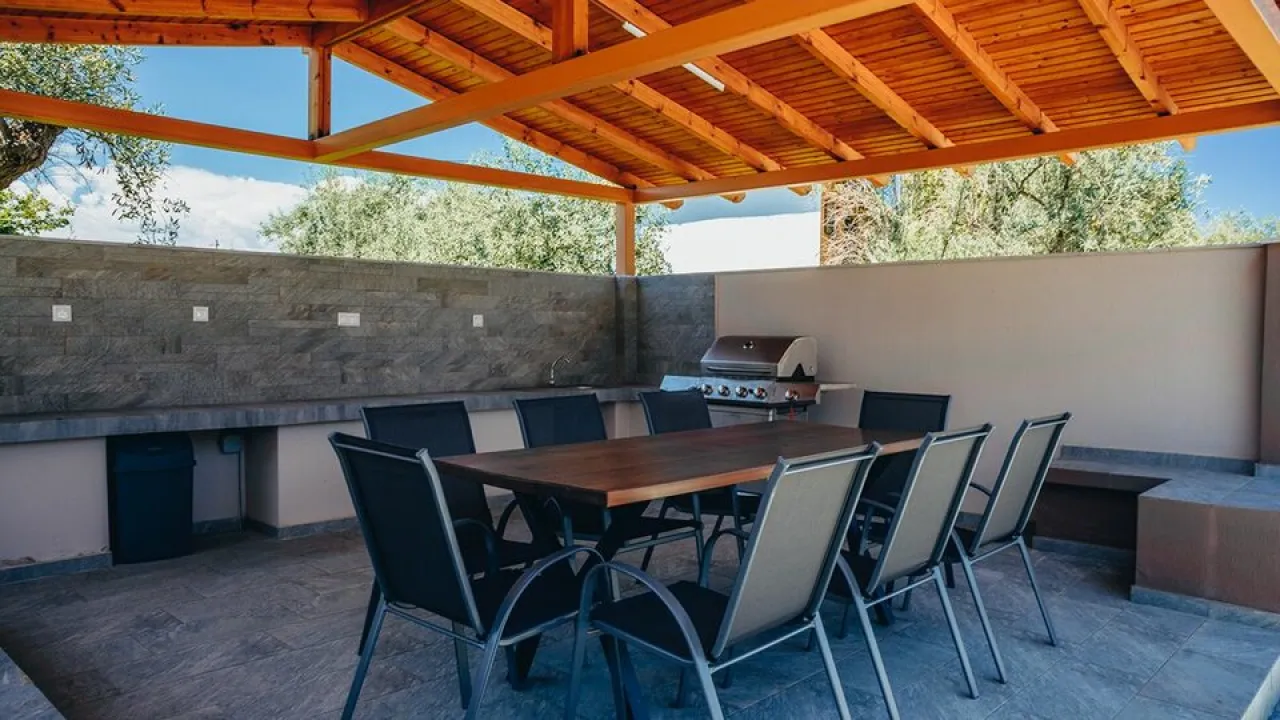 Kupanje u bazenu natopljenom suncem je savršen način da započnete dan. Sa đakuzijem i otvorenim tušem na raspolaganju, kao i raskošnim ležaljkama i puno baštenskog prostora za uživanje, potpuna relaksacija je pred vašim pragom, pre nego što ste išli nekoliko koraka do bele peščane plaže ispod. Veliki otvoreni prostor takođe nudi natkrivenu trpezariju sa roštiljem, tako da cela porodica može zajedno da uživa u nezaboravnom obroku nakon dana provedenog u istraživanju veličanstvenog zaliva Vurvuru. Terasa takođe pruža romantično mesto za čašu vina dok uživate u neverovatnom zalasku sunca na Halkidikiju.