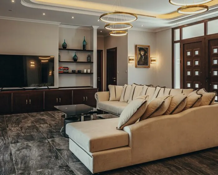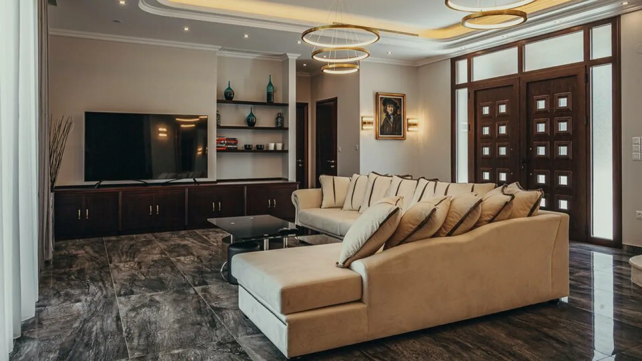 Iz bazena, široka patio vrata vode do svetlog i prozračnog unutrašnjeg životnog prostora vile. Ovde će gosti pronaći udoban prostor za sedenje sa TV-om ravnog ekrana, savršen za izležavanje nakon dana provedenog na vodi. Moderan prostor otvorenog plana neprimetno se uliva u prostranu trpezariju, pored dobro opremljene kuhinje u kojoj imate mogućnost da pripremite nezaboravan obrok kod kuće ili jednostavno koristite aparat za kafu koji je obezbeđen za doručak sa pogledom. U prizemlju ćete takođe naći dva kupatila sa tuš kabinama i dve lepe, svetle spavaće sobe, jednu dvokrevetnu sobu i jednu sobu sa bračnim krevetom. Obe spavaće sobe imaju pristup preko dvorišnih vrata na predivnu terasu i bazen napolju.