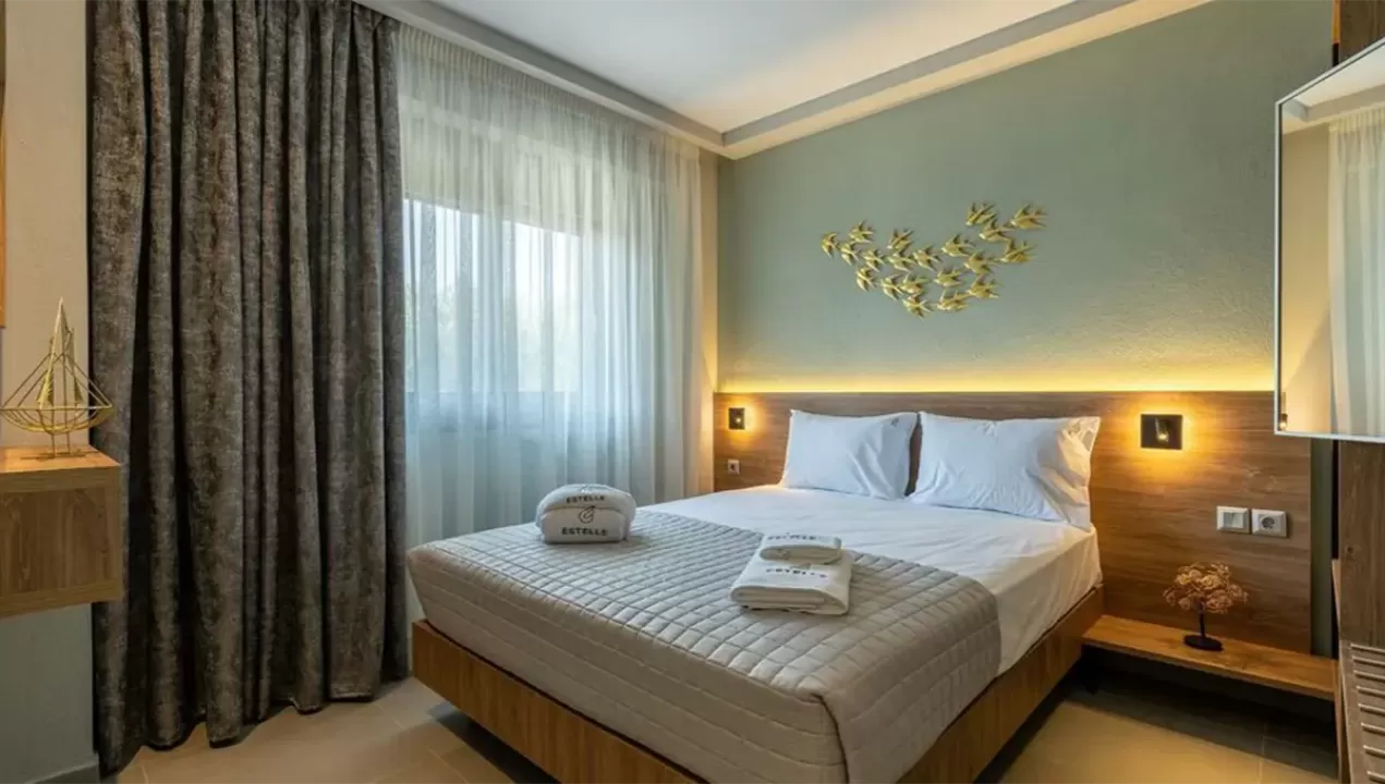 Estelle Luxury Boutique Hotel Gerakini je nedavno renovirani porodični hotel Gerakinija, koji se sastoji iz samo 15 luksuzno opremljenih porodičnih apartmana. U svom sastavu za smeštaj gostiju ima luksuzne apartmane koji mogu ugostiti do šest osoba. Deli dvorište sa starom nerenoviranom zgradomm - Estelle hotelom.