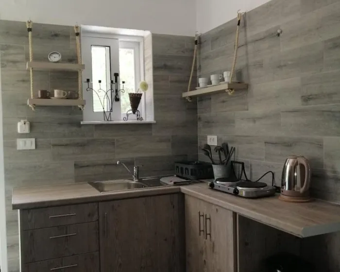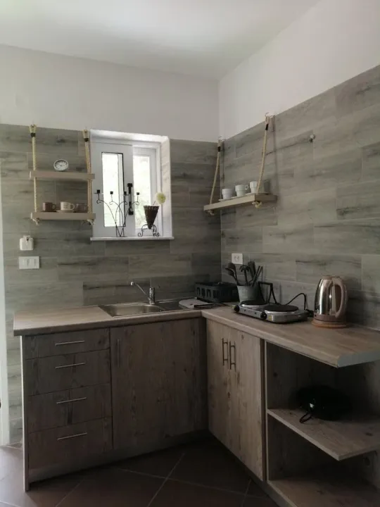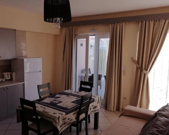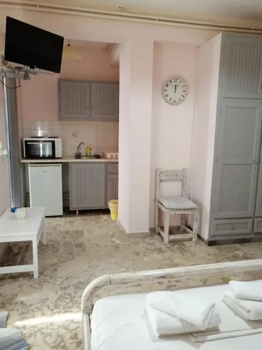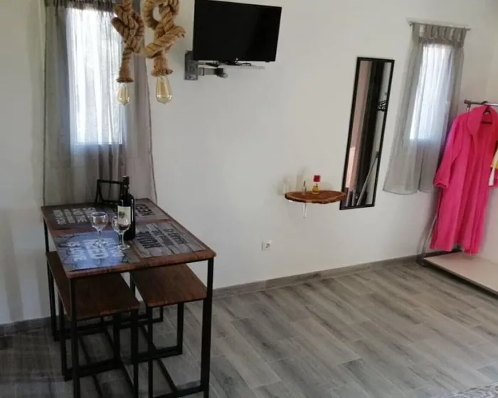 Okružen maslinama, kompleks pruža privatnost i mir. Glavna zgrada sadrži moderne studije za 2 do 4 osobe, opremljene besplatnim Wi-Fi-jem, TV-om, klima-uređajem i čajnom kuhinjom. Pomoćna zgrada nudi dvosobne apartmane za 4 do 6 osoba sa prostranim smeštajem i svim potrebnim sadržajima. Gostima je dostupan i doručak u kutiji, sa izborom između engleske, grčke i francuske opcije.