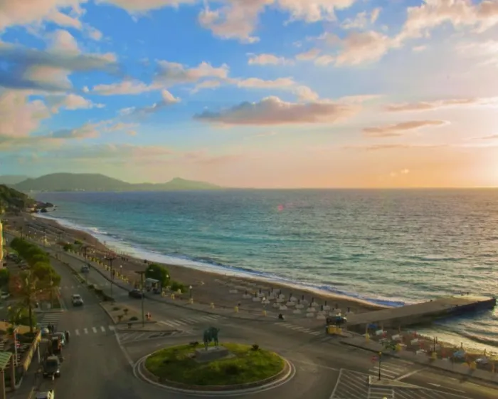 Europa Hotel Rodos se nalazi u centru grada Rodosa, direktno preko puta plaže Psaropoula. Plaža nije samo udaljena samo 50 metara, već je i jedna od najčistijih plaža na ostrvu. Hotel je takođe blizu raznih restorana, barova, prodavnica i banaka. Oko hotela i u starom gradu Rodosa, udaljenom 1,5 km, postoji mnogo opcija za večeru. Dalje, hladni potoci Sedam izvora udaljeni su 15 km, a Akvarijum je samo 900 metara od hotela. Aerodrom Rodosa Diagoras udaljen je 15 km od hotela.