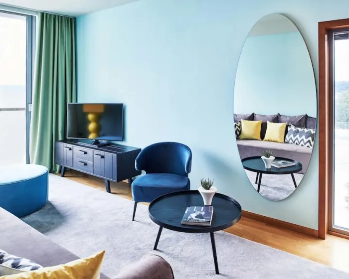 Klima uređaj i centralno grejanje obezbeđuju da sobe održavaju ugodne temperature. Gosti mogu opuštajući se uživati u pogledu na more s balkona ili privatne terase nekih soba. Gosti će sigurno mirno spavati na bračnom krevetu. Sef, minibar i radni sto su takođe dostupni. Gosti će takođe pronaći aparat za kafu/čaj među standardnim sadržajima. Set za peglanje je dostupan radi gostove praktičnosti. Ostale karakteristike uključuju direktni telefonski broj, televizor sa satelitskim/kablovskim kanalima, alarm i WiFi (bez dodatne naplate). Papuče su uključene. Fen za kosu i bade mantili su dostupni u kupatilima, koja uključuju tuš kabinu i kadu. Kozmetički proizvodi i izbor peškira pružaju dodatnu udobnost u kupatilima. Sobe prilagođene osobama u kolicima mogu se rezervisati. Resort ima porodične sobe i 236 soba za nepušače.