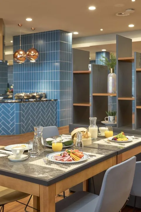 Različite opcije ishrane su dostupne, uključujući restoran, kafić i bar. Polupansion može biti rezervisan. Za doručak, gosti se poslužuju na bogatom bifeu. Razna jela mogu se naručiti a la carte za ručak i večeru. Bezglutenska jela, vegetarijanska jela i dečiji obroci mogu se pripremiti na zahtev. Resort takođe nudi užine. Priprema hrane uživo je posebna atrakcija. Resort nudi izbor alkoholnih i bezalkoholnih pića.
