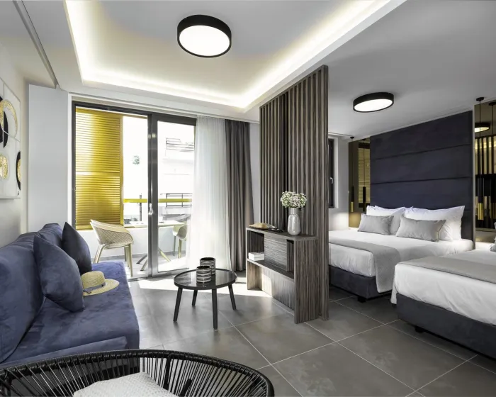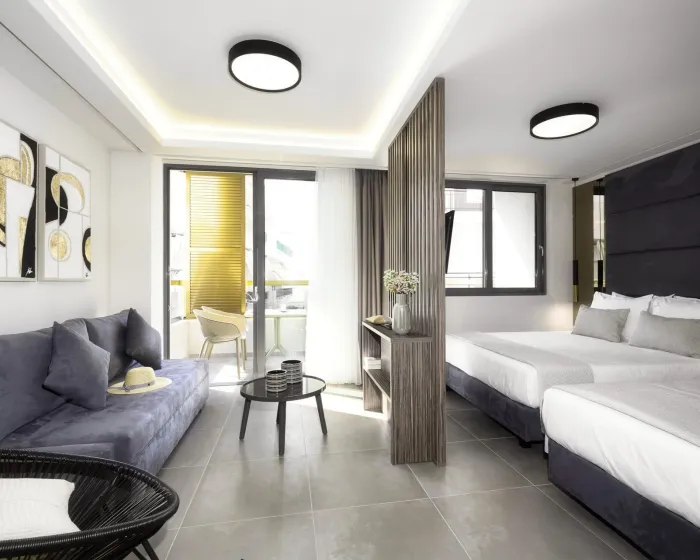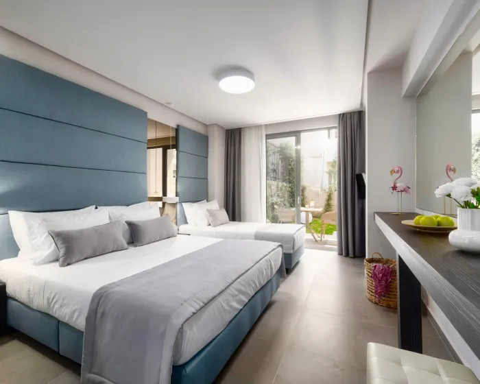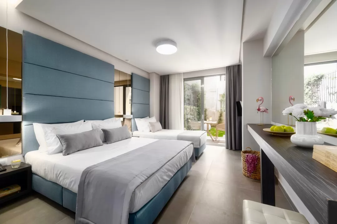 Sobe su opremljene klima uređajem. Standardni sadržaji nekih soba uključuju balkon ili terasu, pružajući dodatni prostor za opuštanje. Sobe imaju bračni krevet i sofu. Dodatni kreveti mogu biti zatraženi. Takođe je obezbeđen mini-kuhinjica sa aparatom za čaj/kafu. Telefon, televizor sa satelitskim/kablovskim kanalima i WiFi (bez dodatnih troškova) su takođe obezbeđeni. Gosti će u svojim sobama pronaći papuče. Kupatila su opremljena tušem. Kozmetički proizvodi i izbor peškira osiguravaju dodatnu udobnost. Hotel ima porodične sobe i sobe za nepušače.