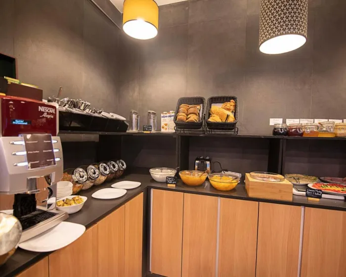 Različite opcije za obroke su dostupne, uključujući restoran, kafić i bar. Obilan doručak se služi svakodnevno. Posebni obroci, uključujući dijetalne obroke, takođe su dostupni. Hotel takođe nudi posebne opcije za ketering.