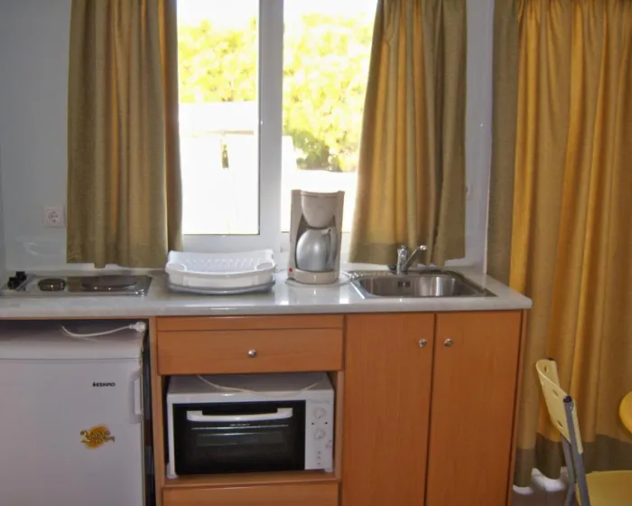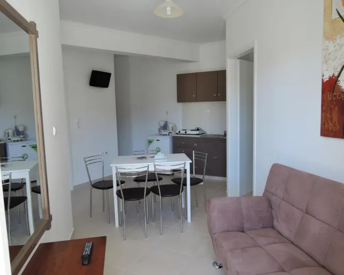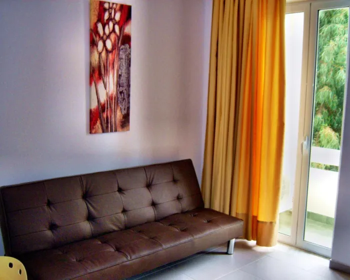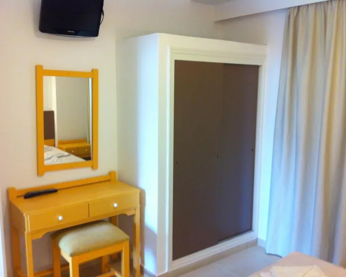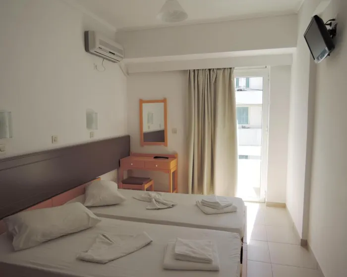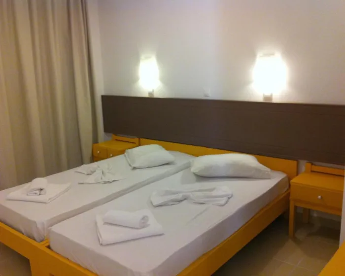 Sobe su opremljene klima uređajem i centralnim grejanjem. Gosti mogu uživati u pogledu na more sa balkona ili terase. Sobe imaju bračni krevet i sofu na razvlačenje. Dostupne su odvojene spavaće sobe. Dodatni kreveti mogu biti zatraženi. Potpuno opremljena čajna kuhinja sa frižiderom, šporetom, aparatom za kafu/čaj i rernom, kao i kompletan set posuđa, standardna je opcija. Telefon, TV i WiFi (bez dodatne naknade) obezbeđuju optimalnu udobnost. Kupatila su opremljena tušem i kadom, kao i fenom za kosu. Kao posebno pogodnost u kupatilima, gostima su na raspolaganju kozmetički proizvodi. Hotel ima porodične sobe i sobe za nepušače.