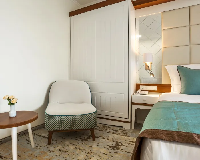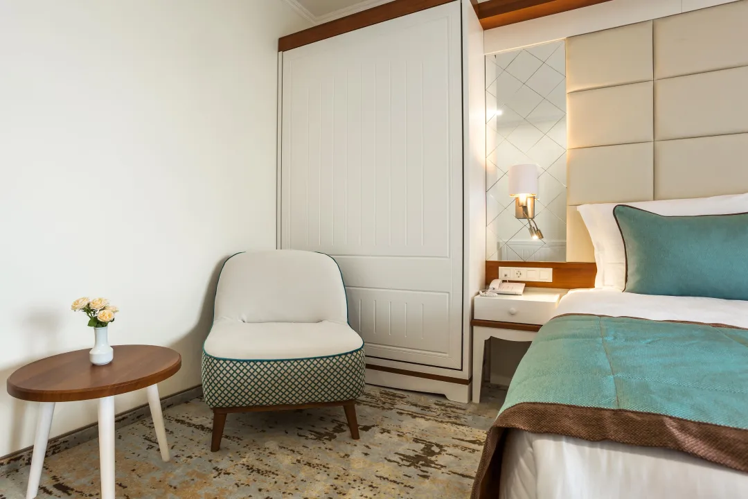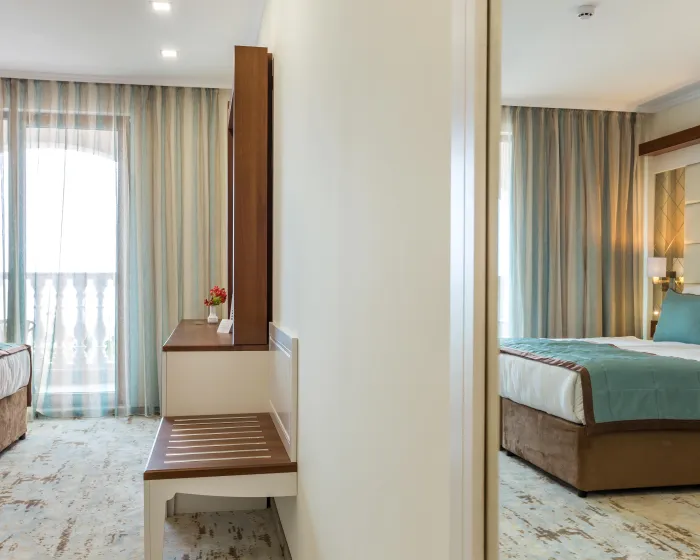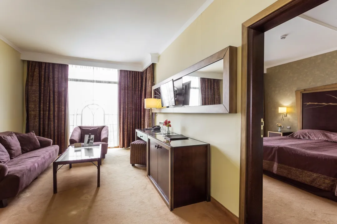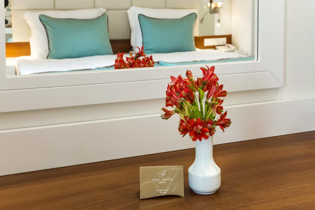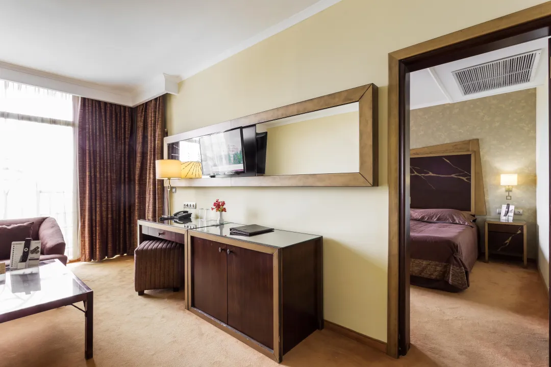 Sobe sadrže dnevni boravak i kupatilo, a klima uređaj osigurava idealnu temperaturu. Balkon sa delimičnim pogledom na more je uključen u većinu jedinica i podstiče goste da se zadrže neko vreme. Sve sobe su sa tepihom i uključuju bračni krevet i sofu na rasklapanje. Za mlade putnike, mogu se obezbediti dečiji krevetići. Takođe su dostupni sef i mini bar. Televizor sa satelitskim/kablovskim kanalima, radio i WiFi (bez dodatne naplate) pružaju sve neophodno za udoban odmor. Kupatila su opremljena tušem i kadom, kao i fenom za kosu. Sobe prilagođene za osobe u invalidskim kolicima sa pristupačnim kupatilima su takođe dostupne. Hotel ima 35 porodičnih soba i 215 soba za nepušače.
