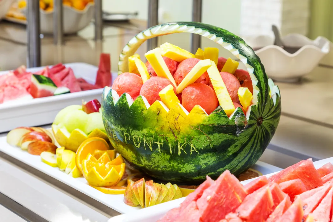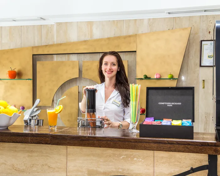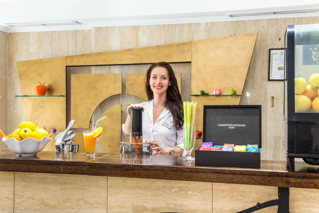 Objekti za obroke uključuju bar i lobi bar. Ishrana se obezbeđuje u 2 restorana sa švedskim stolom i à-la-carte restoranima sa klima uređajem (za nepušače). Hotel nudi širok spektar opcija za ishranu. Mogu se rezervisati puni pansion i all-inclusive specijal. Za doručak, ručak i večeru, gosti sami služe sebe na bifeu ili biraju svoje omiljene specijalitete sa menija (za večeru). Dijetalni obroci, obroci bez glutena i dečiji obroci mogu se pripremiti na zahtev. Osim toga, dostupne su posebne opcije ishrane, piknici i snackovi. Šou kuvanje je posebno zanimljiva atrakcija. Hotel nudi izbor alkoholnih i bezalkoholnih pića.