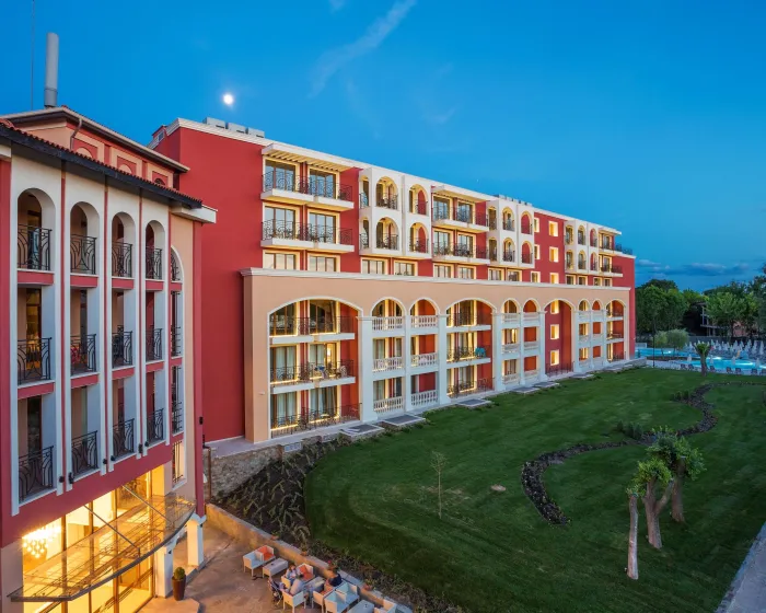 Kompleks bazena uključuje slanu i slatku vodu, od kojih su neki zagrejani, kao i dečiji deo bazena. Postoje 2 otvorena bazena, u kojima gosti mogu da se osveže u toplim vremenima. Tokom tmurnih dana, gosti mogu odabrati unutrašnji bazen umesto toga. Čisto opuštanje u đakuziju (uz doplatu), zabava na vodopadu i osvežavajuća pića u baru pored bazena - gosti će doživeti bogatstvo i raznovrsnost dana provedenog u vodi. Suncobrani i udobni ležaljke su dostupni na sunčanoj terasi. Za goste koji žele da ostanu aktivni, na raspolaganju su boćanje, odbojka i streličarstvo. Alternativno, gosti mogu isprobati vodene aerobike ili, uz doplatu, kanuing. Sportskim entuzijastima se nude razni unutrašnji aktivnosti, uključujući teretanu, stoni tenis, bilijar, pikado, jogu, aerobik i pilates. Hotel nudi niz sadržaja u oblasti wellness-a. Opcije uključuju hidroterapiju i, uz dodatnu naknadu, saunu, parno kupatilo, hamam, salon lepote i tretmane masaže. Slobodno vreme uključuje zabavni program, dečiji klub, dečji disko, živu muziku i noćni klub.