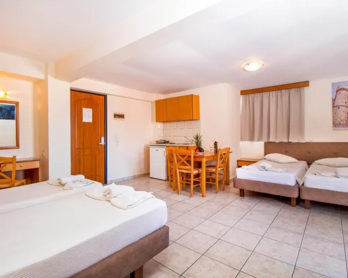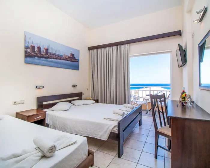 Klima uređaj i centralno grejanje osiguravaju da sobe održavaju prijatne temperature. Gosti mogu opustiti se i uživati u pogledu na more sa balkona ili privatne terase nekih soba. Gosti će sigurno imati dobar san u bračnom krevetu. Dodatni kreveti mogu biti zatraženi. Dodatni sadržaji uključuju frižider i mini frižider. Ostali sadržaji uključuju telefon, TV i WiFi (bez dodatnih troškova). Kupatila imaju tuš kabinu i kadu. Hotel ima porodične sobe i sobe za nepušače.
