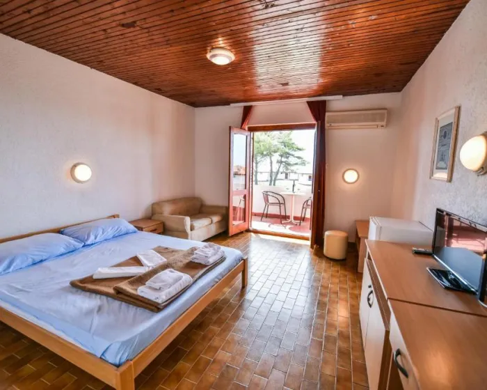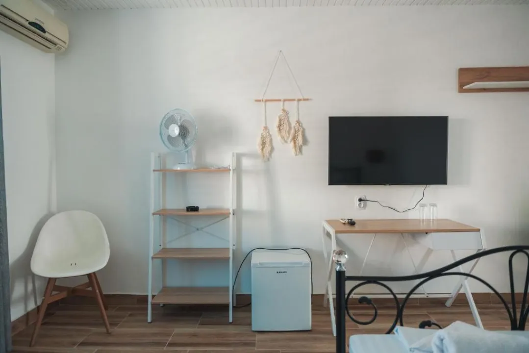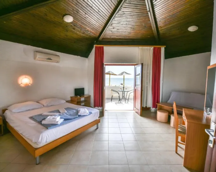 Sobe su opremljene klima uređajem kako bi boravak bio prijatan tokom toplih dana. Pojedine smeštajne jedinice imaju balkon ili terasu sa pogledom na more, a moguće je rezervisati i smeštaj sa odvojenom spavaćom sobom. Standardna oprema uključuje frižider, satelitsku televiziju i WiFi uz doplatu. Kupatila su opremljena tušem, a dostupne su i porodične sobe.