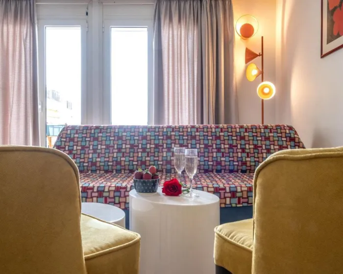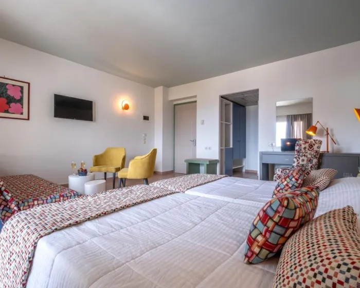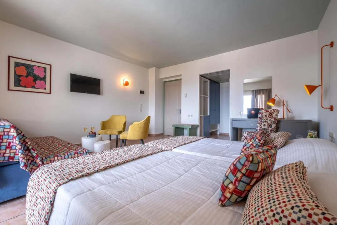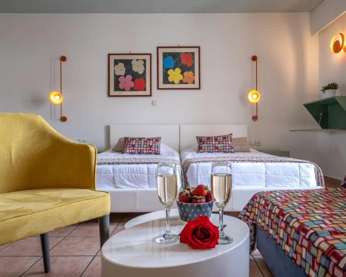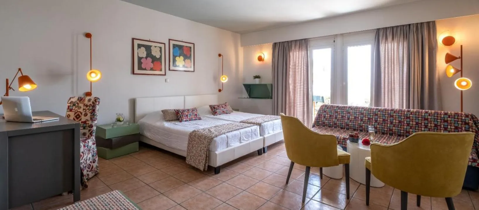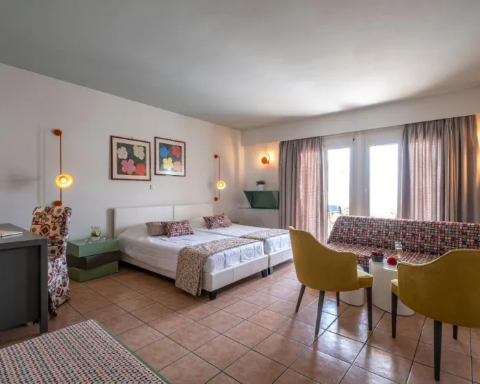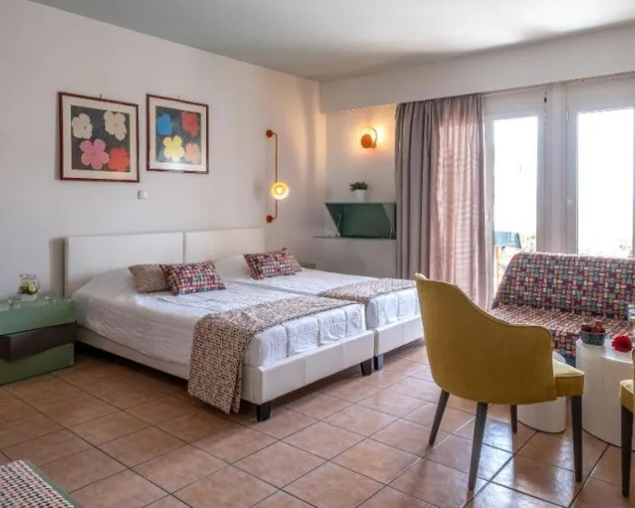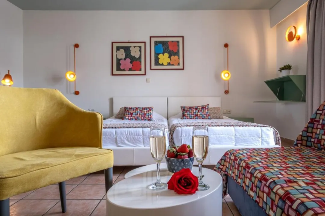 Klima uređaj i centralno grejanje osiguravaju da sobe održavaju ugodne temperature. U većini jedinica, gosti mogu uživati u pogledu na more sa terase ili balkona. Sobe imaju bračni krevet i sofu. Dodatni kreveti se mogu zatražiti. Sef i minibar su takođe dostupni. Gosti će takođe pronaći mini frižider među standardnim sadržajima. Direktni telefonski broj, TV i WiFi (bez dodatne naplate) obezbeđuju sve neophodno za udoban odmor. Kupatila su opremljena tušem i kadom, kao i fenom za kosu. Sobe prilagođene invalidima sa kupatilima pristupačnim za invalide takođe su dostupne. Hotel ima porodične sobe i sobe za nepušače.