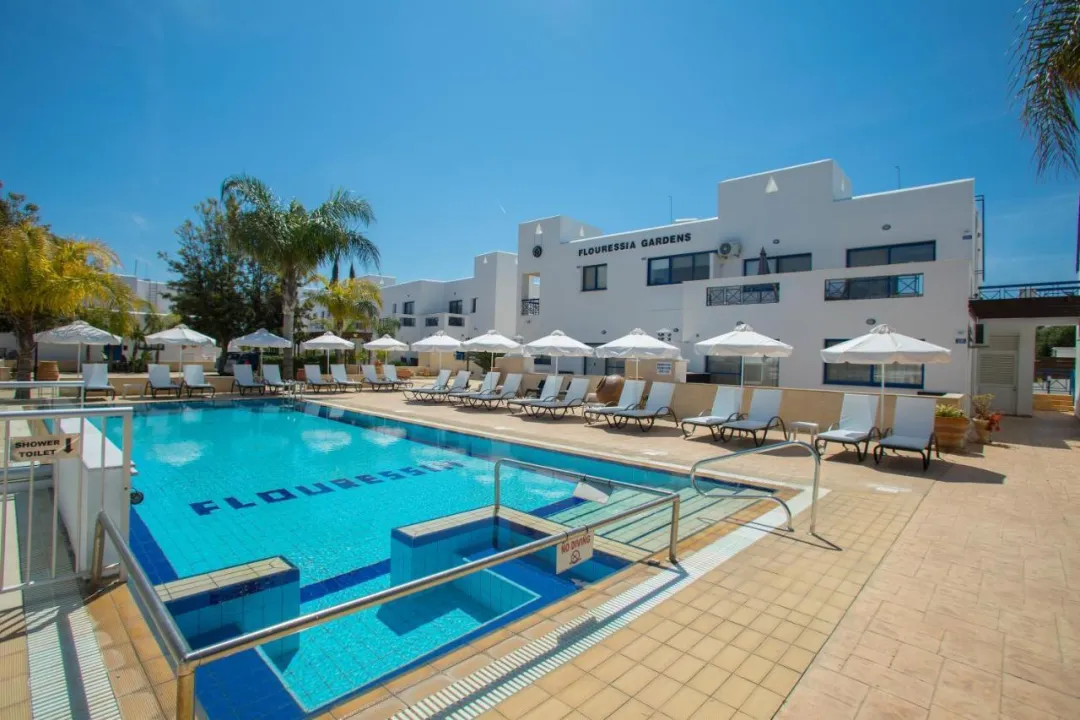 Flouressia Gardens Protaras apartmanski hotel dočekuje goste u Protarasu, diskretno izdvojen od centra i vreve, od prve neuređđeneplaže udaljen oko 800 metara. Osoblje koje govori engleski je srećno da pomogne i da pruži savete. Usluge i sadržaji uključuju uslugu čuvanja prtljaga, sef, uslugu iznajmljivanja automobila, transfer i prostor za pušenje. Bežični pristup internetu u javnim prostorima omogućava gostima da ostanu povezani. Vrt pruža dodatni prostor za odmor i opuštanje na otvorenom. Gosti koji dolaze kolima mogu besplatno parkirati svoja vozila na parkingu. Usluge uključuju hotelski šatl autobus. Aktivni gosti mogu koristiti uslugu iznajmljivanja bicikala da istraže okolinu.