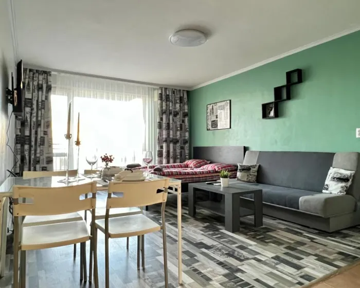 Klimatizovan stan se sastoji od 1 odvojene spavaće sobe, potpuno opremljene kuhinje i 1 kupatila. Na raspolaganju je flat-screen TV.