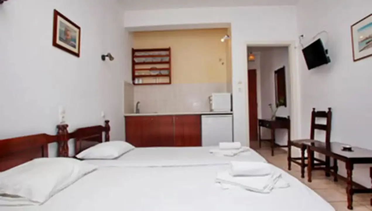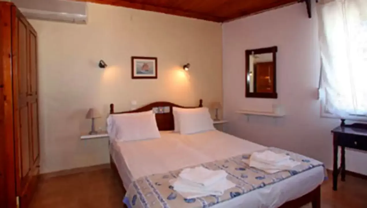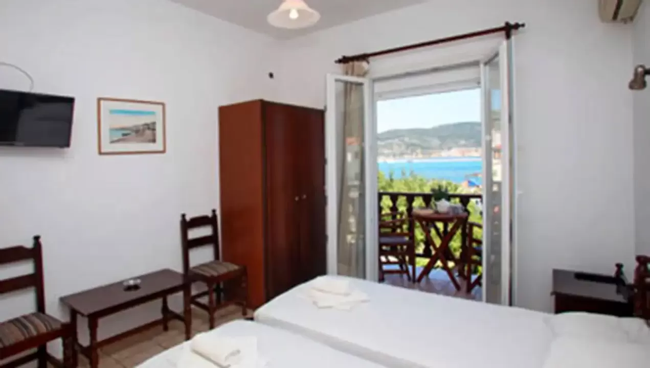 Vila Fotis je starijeg datuma, nalazi se na odličnj lokaciji u gradu Skopelosu, na svega oko 600 metara od luke i centra, a od uredjene peščane gradske plaže (sa barovima i tavernama, idelana je za celodnevni boravak, kupanje i sunčanje) je udaljena oko 80 metara. Vila se satoji od studija na prvom i drugom spratu i opremljeni su TV-om, wifi i klima uredjajem (uračunati u cenu). Dvokrevetni studiji sadrže opremljenu kuhinju, deo s dva standardna ležaja, kupatilo i manju terasu s garniturom za sedenje. Dvokrevetni+1 studio se nalazi na drugom spratu i sadrži i pomoćni ležaj. Ono što izdvaja ovaj studio je da se u stvari nalazi na velikoj krovnoj terasi s prelepim pogledom na more, grad i luku. Terasu koristi i vlasnik vile kada boravi u svom apartmanu pored. Vila Fotis je B kategorije, ima peškire i ima mogućnost parkinga u blizini vile. Vilu preporučujemo svima koji žele da borave u gradu, u centru zbivanja, a skoro na samoj plaži i dovoljno izdvojenu od buke i gužve.