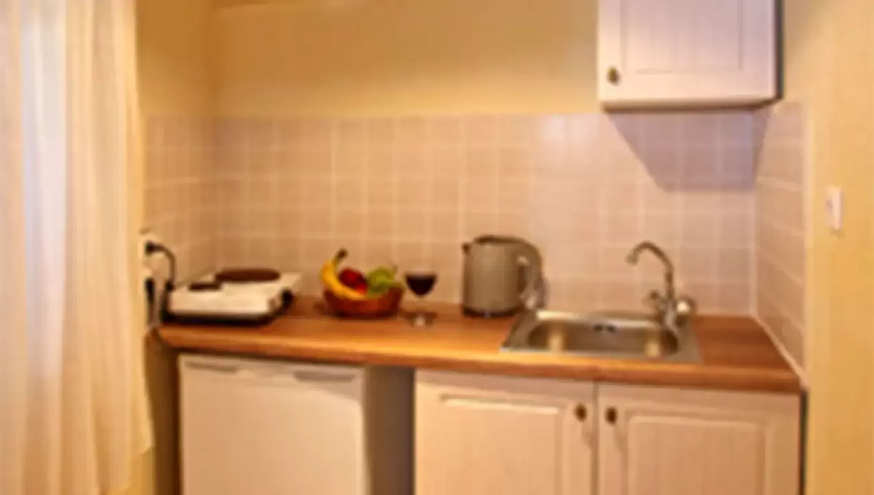kupatilo, peškiri, opremljena mini-kuhinja, klima-uredjaj, TV, balkon sa garniturom za sedenje