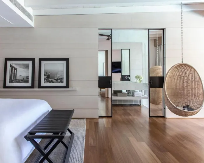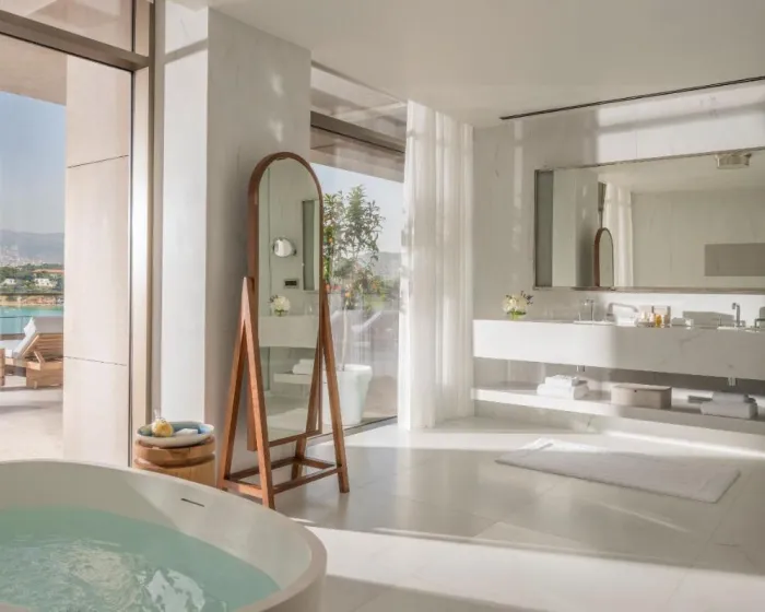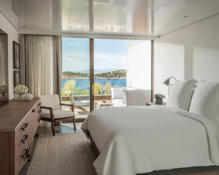 Klima uređaj i centralno grejanje obezbeđuju udobnu temperaturu u sobama. Gosti mogu opuštajući uživati u pogledima na more sa balkona ili privatne terase nekih soba. Sobe imaju bračni krevet i sofu. Dodatni kreveti mogu biti dobijeni na zahtev. Sef, mini bar i radni sto su takođe dostupni. Gosti će takođe naći aparat za kafu/čaj uključen među standardnim sadržajima. Dodatne pogodnosti uključuju set za peglanje i presu za pantalone. Telefon, televizor sa satelitskim i pay-per-view kanalima, radio i WiFi pružaju sve neophodno za udoban odmor. Papuče su uključene. Fen za kosu i bade mantili dostupni su u kupatilima, koja uključuju tuš kabinu i kadu. Kao posebna pogodnost, kupatila su opremljena kozmetičkim proizvodima i izborom peškira. Prilagođene sobe za osobe sa invaliditetom sa kupatilima prilagođenim za invalidska kolica su takođe dostupne. Kompleks ima porodične sobe i sobe za nepušače.