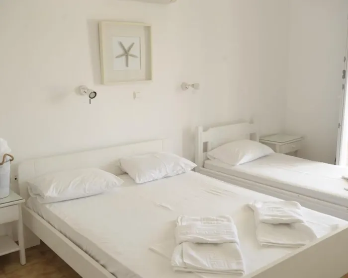 Klima uređaj i centralno grejanje osiguravaju udobnu temperaturu u sobama. Gosti mogu uživati u pogledu na more sa balkona ili terase. Sobe imaju bračni krevet. Dodatni kreveti mogu biti dostupni na zahtev. Sef pruža siguran prostor za čuvanje lične imovine gostiju. Dodatne pogodnosti uključuju frižider i mini frižider. Takođe su obezbeđeni telefon, TV i WiFi (bez dodatne naplate). Kupatila su opremljena tušem i kadom, kao i fenom za kosu. Gosti mogu rezervisati i sobe prilagođene osobama u invalidskim kolicima sa pristupačnim kupatilima. Hotel ima porodične sobe i sobe za nepušače.
