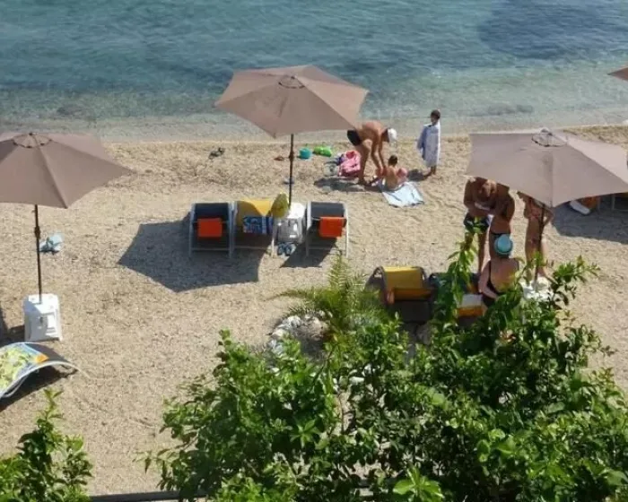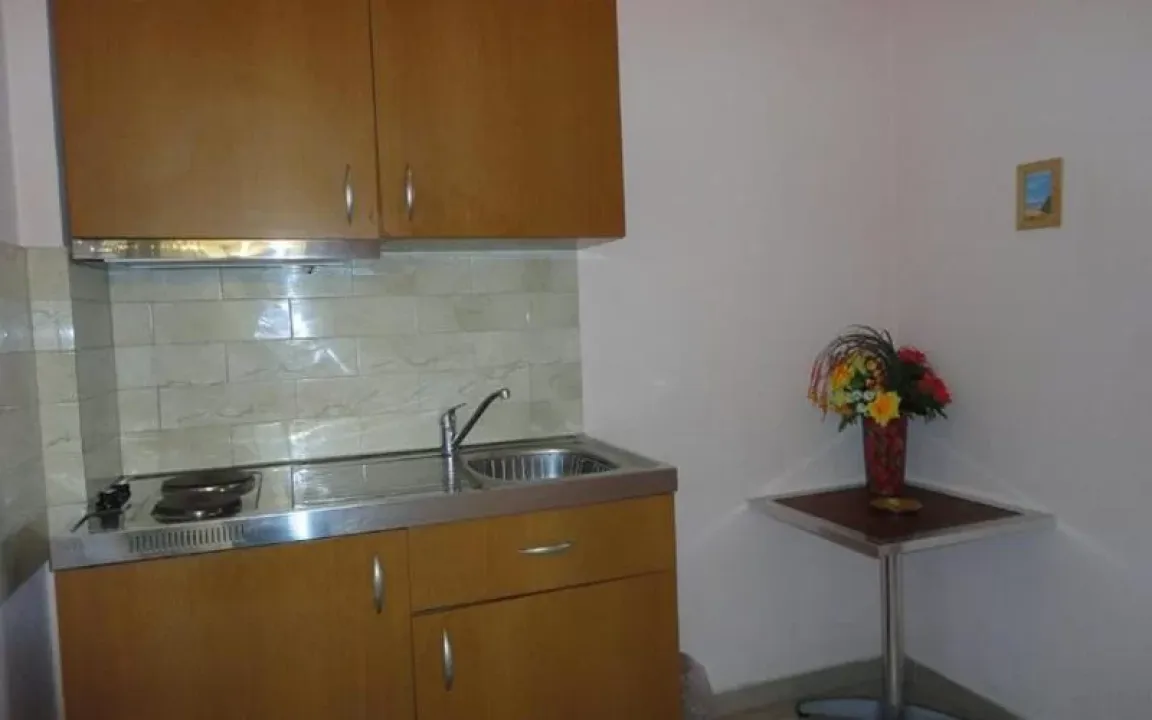 Studio 02 PROMO SV (pogled more) – soba manje kvadrature (u prizemlju) i sa nešto nižim plafonom sa dva standardna ležaja. Odvojeni deo sa mini kuhinjom sa šporetom sa dve ringle, mini frižiderom, sudoperom, električnim bokalom i posuđem za odgovarajući broj osoba, kupatilom, terasom ispred same sobe sa garniturom za sedenje i obedovanje i direktnim izlaskom na plažu.