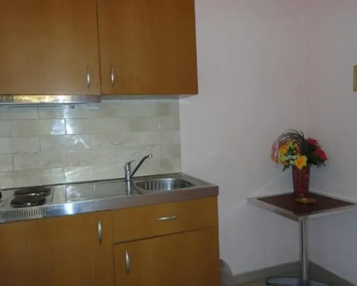 Studio 02 SV (pogled more) – prostrana soba sa dva standardna ležaja i pomoćnim ležajem na rasklapanje prema potrebi (prostrana soba može biti u prizemlju, na prvom ili drugom spratu, zavisi od trenutne raspoloživosti). Odvojeni deo sa mini kuhinjom sa šporetom sa dve ringle, mini frižiderom, sudoperom, električnim bokalom i posuđem za odgovarajući broj osoba, kupatilom, terasom sa garniturom za sedenje i obedovanje.
