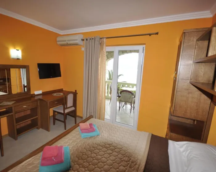 Klima uređaj i centralno grejanje osiguravaju da sobe održavaju prijatnu temperaturu. Gosti mogu uživati u pogledu na more sa balkona ili terase. Sobe imaju bračni krevet ili sofu. U sobi se nalazi radni sto. Gosti će pronaći i mikrotalasnu pećnicu među standardnim sadržajima. Pegla je obezbeđena radi gostove praktičnosti. Takođe su obezbeđeni televizor sa satelitskim/kablovskim kanalima, radio i WiFi (bez dodatnih troškova). Kupatila su opremljena tuš-kadom i uključuju fen za kosu. Kozmetički proizvodi i odabrani peškiri pružaju dodatnu udobnost u kupatilima. Hotel ima porodične sobe i sobe za nepušače.
