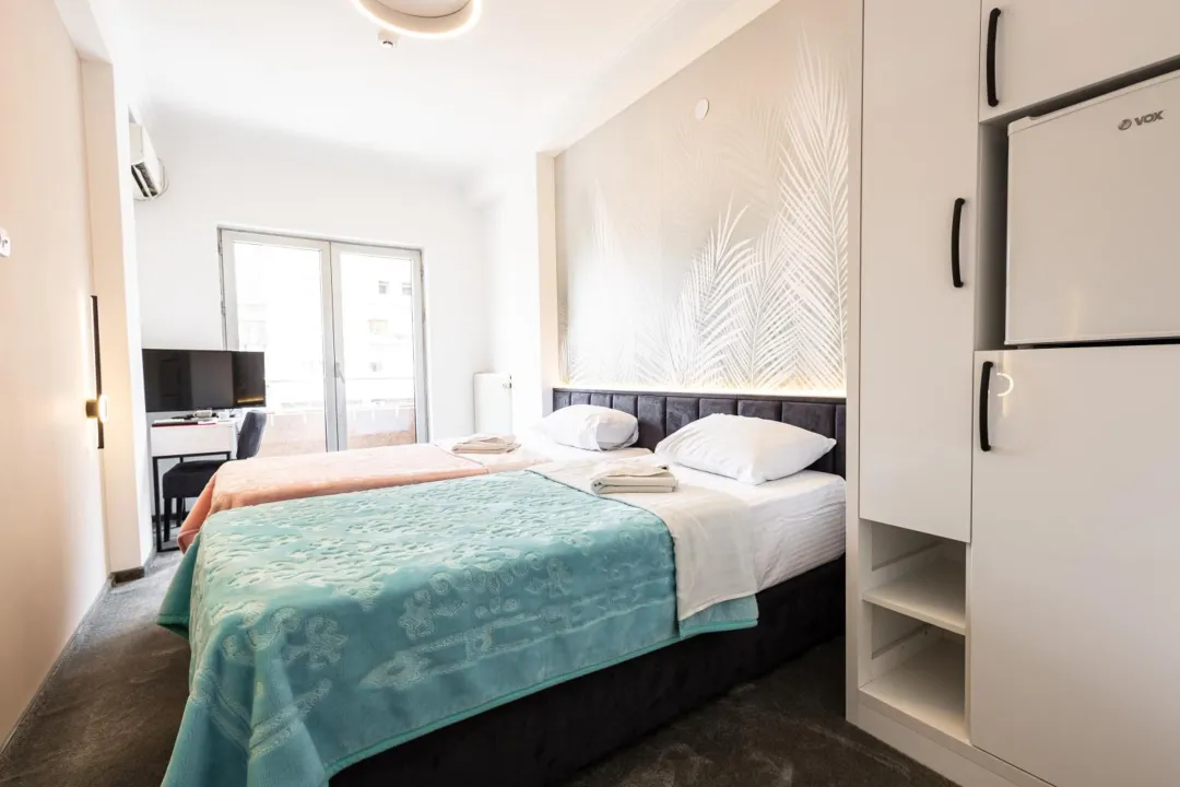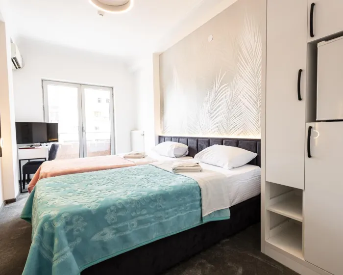 Sobe su opremljene centralnim klima uređajem. U sobama se nalaze queen size krevet i kauč na razvlačenje. Na raspolaganju su telefon, sef i besplatan WiFi. Hotel raspolaže porodičnim i nepušačkim sobama.