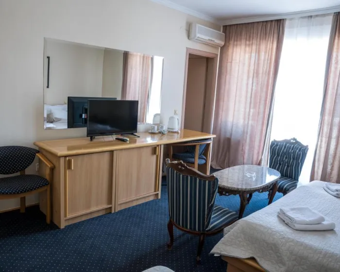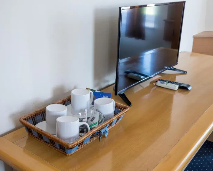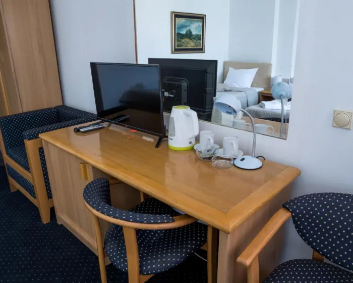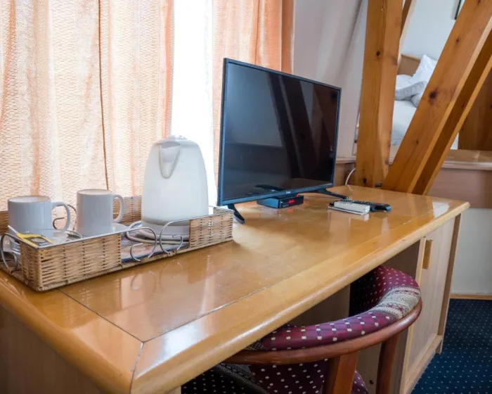 Sobe su opremljene radnim stolom i flat screen televizorom, dok pojedine imaju i balkon. Gostima su na raspolaganju garderober i ketler.
