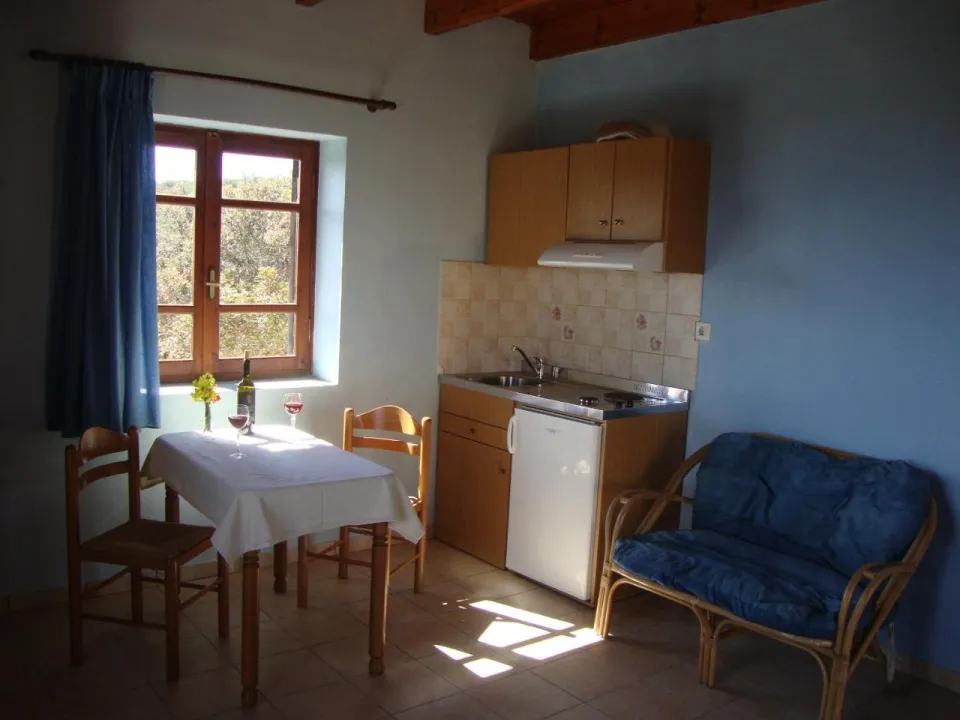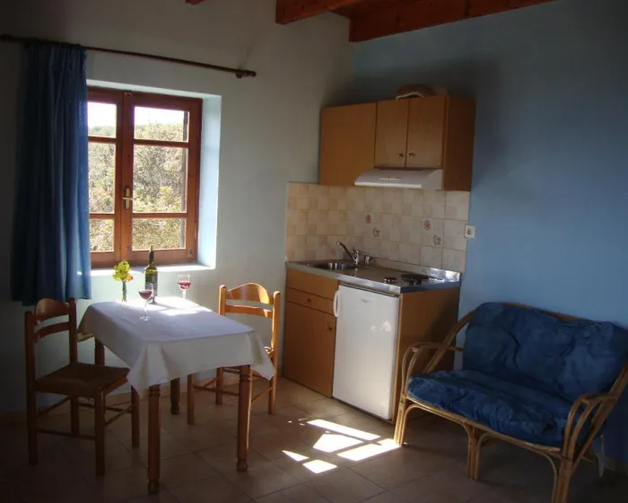 Svi apartmani imaju terasu sa pogledom na more, potpuno opremljenu čajnu kuhinju sa frižiderom i šporetom, kao i privatno kupatilo sa tušem. Svi apartmani nude balkon sa spoljnim nameštajem i pogledom na planinu. U kompleksu apartmana, svaka jedinica je opremljena posteljinom i peškirima.