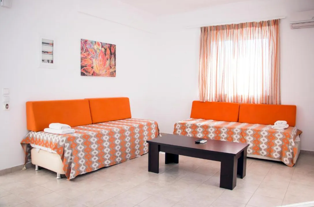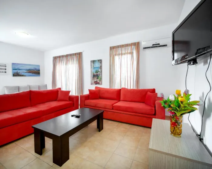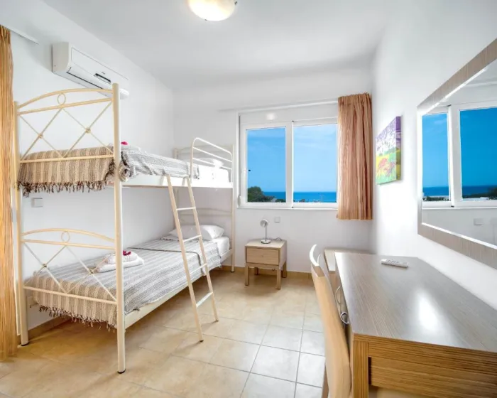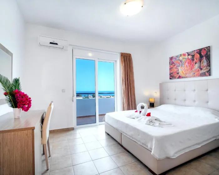 Sobe sadrže kuhinju i kupatilo. Klima uređaj osigurava udobne temperature. Gosti mogu da se opuste i uživaju u pogledu na more sa terase ili privatne terase nekih soba. Sobe imaju bračni krevet ili sofu. Dodatni kreveti mogu biti zatraženi. Na raspolaganju su i sef i radni sto. Kuhinjica dolazi sa frižiderom, mikrotalasnom pećnicom i čajnom kuhinjom. Dalje pogodnosti uključuju veš mašinu i mašinu za sušenje veša. Telefon, satelitska televizija i WiFi (bez dodatne naknade) su takođe obezbeđeni. Kupatila uključuju fen za kosu i opremljena su tušem i kadom. Kozmetički proizvodi i izbor peškira pružaju dodatnu udobnost u kupatilima. Kompleks ima porodične sobe i nefajlove sobe.