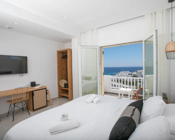 Sobe su opremljene klima uređajem i centralnim grejanjem. Gosti mogu uživati u pogledu na more sa balkona ili terase. Sobe imaju bračni krevet, krevet queen-size ili krevet king-size. Dostupne su odvojene spavaće sobe. Dodatni ležajevi mogu se zatražiti. Takođe su dostupni sef i radni sto. Dodatne mogućnosti uključuju frižider i mini frižider. Pegla se pruža radi gostima pogodnosti. Takođe su obezbeđeni telefon, televizor sa satelitskim/ kablovskim kanalima, radio, adapter za utikač i WiFi. Papuče su uključene. Kupatila su opremljena tušem i kadom, kao i fenom za kosu. Kozmetički proizvodi i izbor peškira pružaju dodatnu udobnost u kupatilima. Hotel ima porodične sobe i sobe za nepušače.