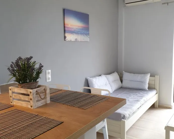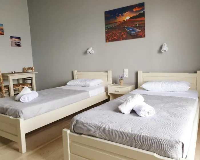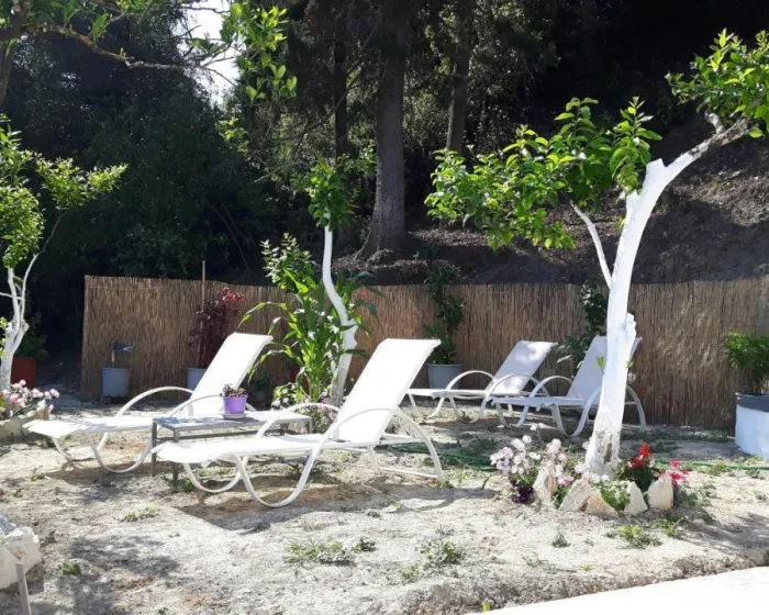 Svi jedinice dolaze sa terasom sa pogledom na more, potpuno opremljenom kuhinjom sa rernom i frižiderom, i privatnim kupatilom sa tušem. Svaka jedinica ima trem sa otvorenim trpezarijskim prostorom. U apartmanskom kompleksu, svaka jedinica ima posteljinu i peškire.
