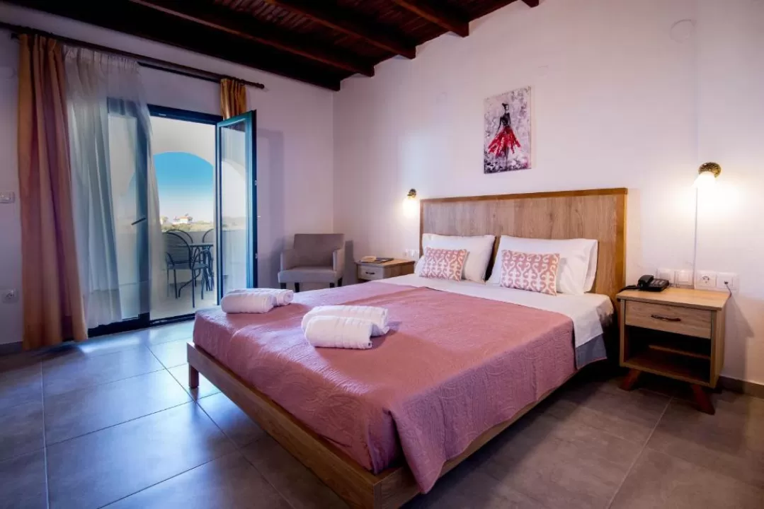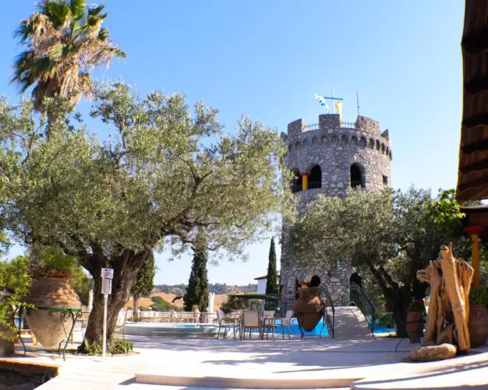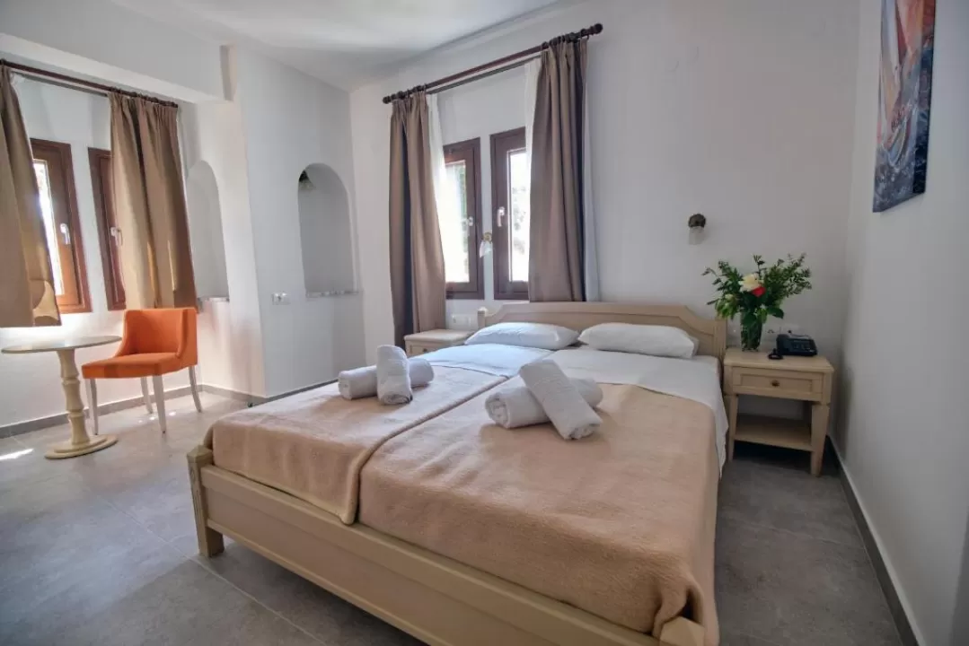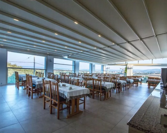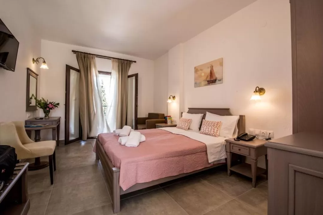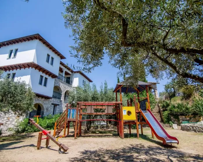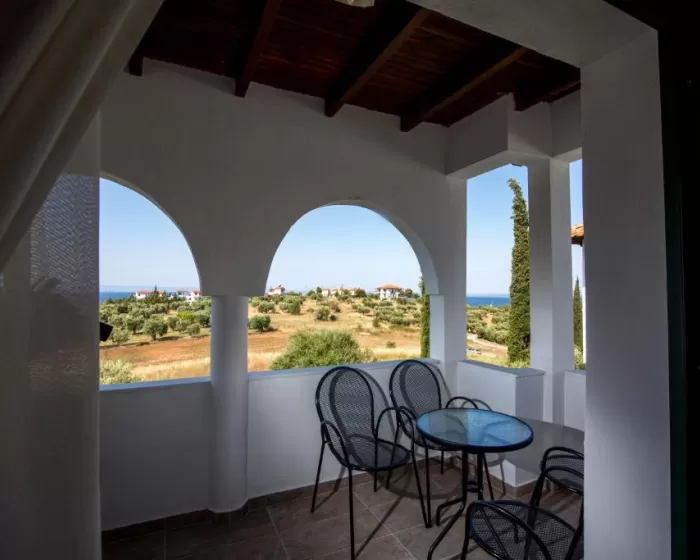 Geranion Village Hotel se nalazi u popularnom letovalištu Nikiti, na samom izlasku iz mesta, odmah nakon jedinog Lidla Sitonije. Od privatne hoteske plaže je udaljen oko 1500 metara, a od centra i crkve 2000 metara. U svom sastavu za smeštaj gostiju ovaj hotel ima 90 soba, koje mogu ugostiti maksimalno četiri osobe u porodičnim sobama. Geranion Village svojim gostima za animaciju nudi otvoreni bazen sa panoramskim pogledom na more i grad Nikiti, uredjenu baštu idečije igralište.