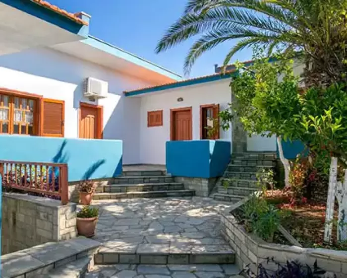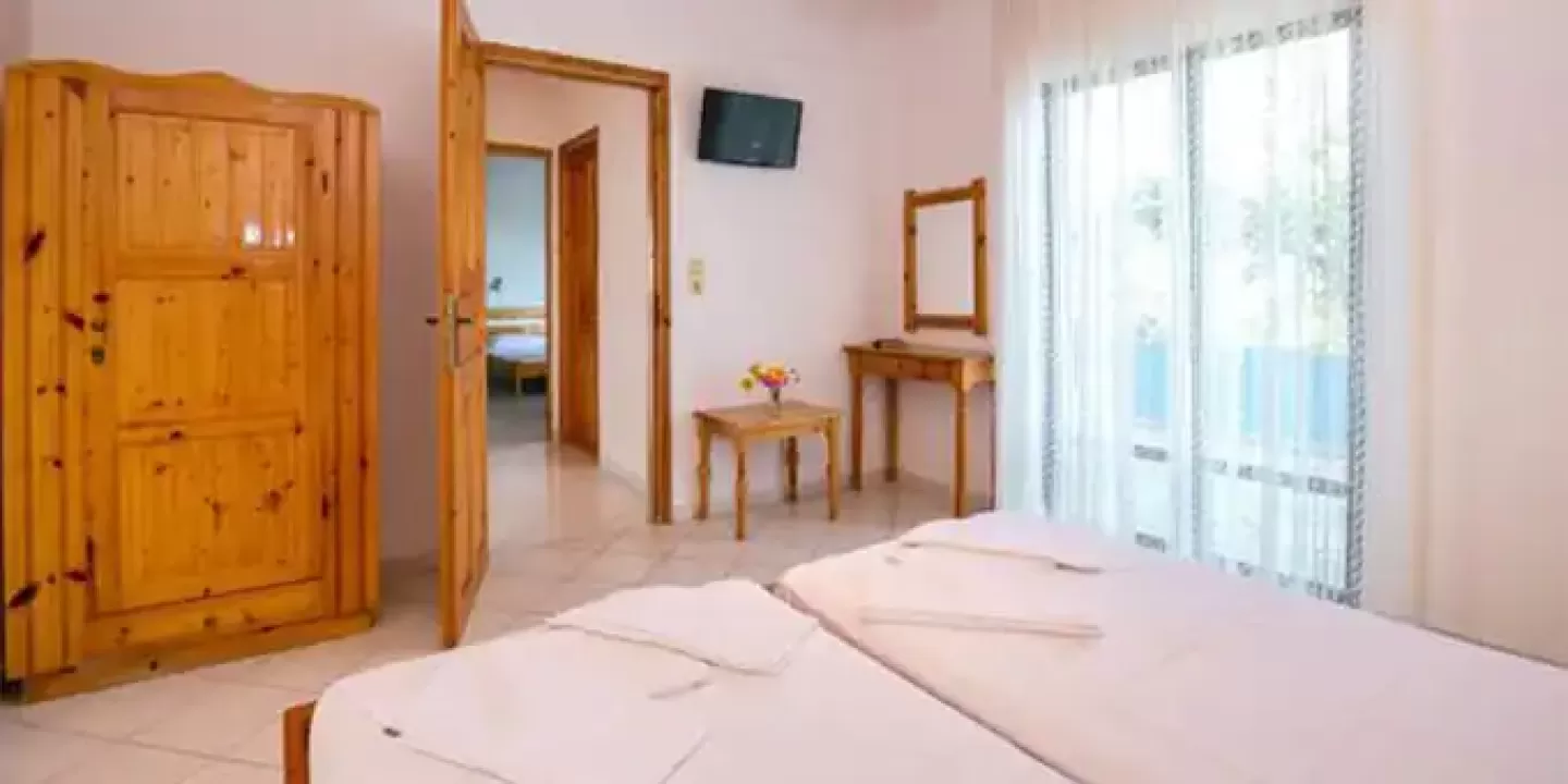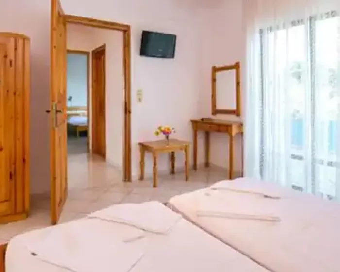 Aparthotel Giola By Astris Cliff Astris se nalazi na oko 1 kilometar udaljenosti od plaže letovališta Astris. Smešten je u mirnom okruženju, u dvorištu sa puno maslinovog drveća. Najbliži supermarketi, restorani, kafići i barovi su udaljeni oko 1 kilometar, a letovalište Potos oko 7 kilometara. Promena posteljine i peškira se obavlja jednom nedeljno. Dozvoljen boravak malim kućnim ljubimcima, na upit. Ishrana: doručak - gosti sami pripremaju hranu iz frižidera i kuhinje (?).