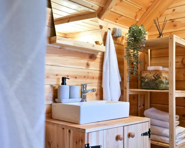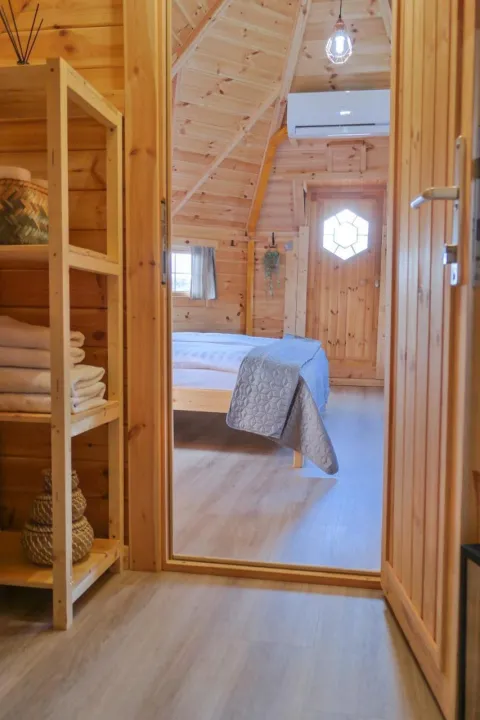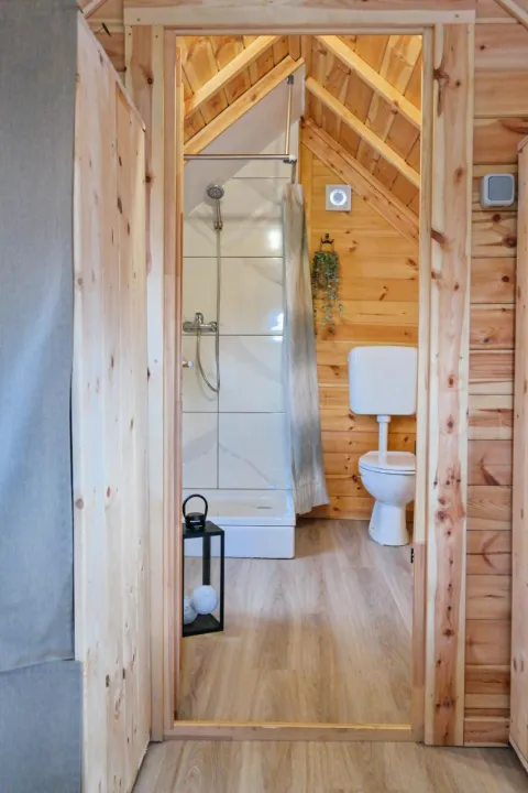 Jedinice su opremljene terasom, klima uređajem, flat-screen TV-om i privatnim kupatilom sa tušem i fenom za kosu. U kampu, svaka jedinica dolazi sa posteljinom i peškirima.