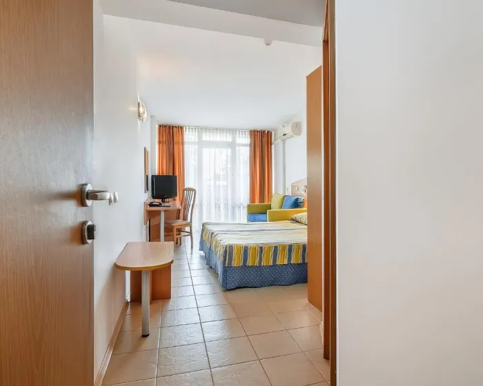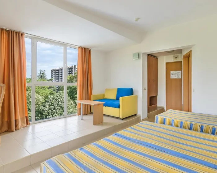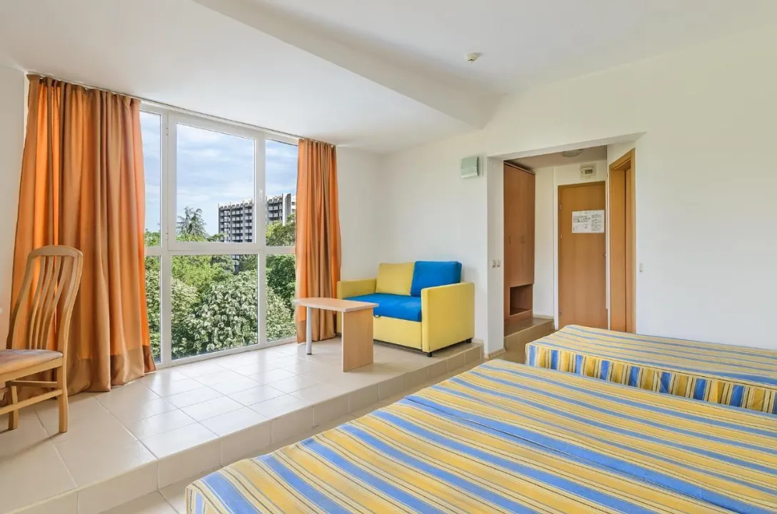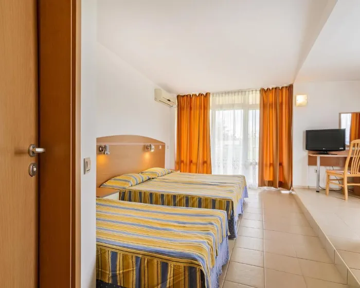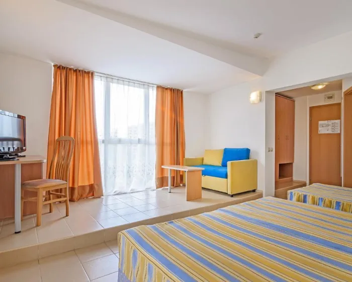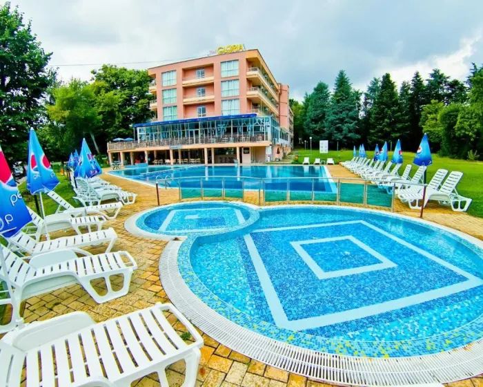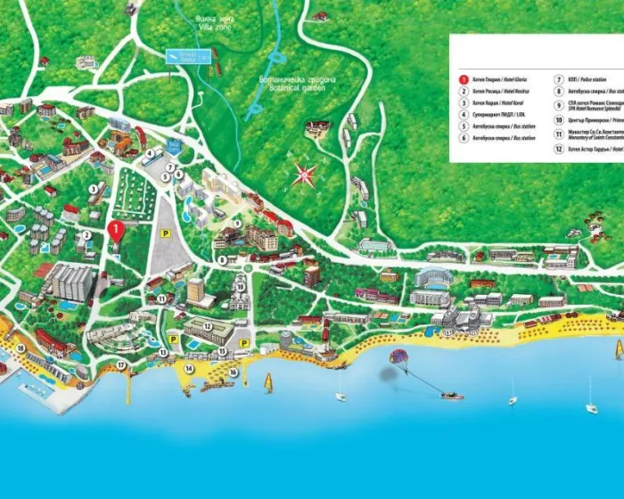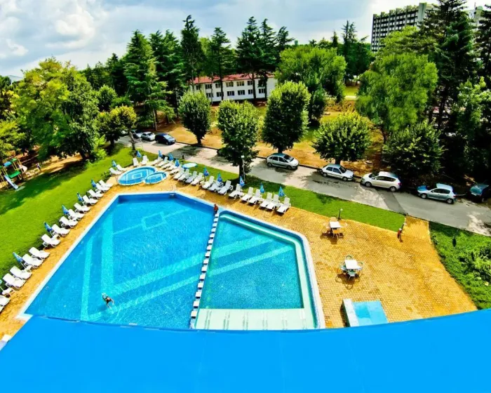 Hotel se nalazi u centralnoj oblasti Resorts Sv. Konstantina i Jelene, sa prelepim parkom ispred sebe i nalazi se na samo 500 m od plaže. Autobuska stanica, restorani, barovi i prodavnice se mogu naći na oko 5 minuta hoda, dok je grad Varna udaljen oko 15 minuta vožnje od hotela.