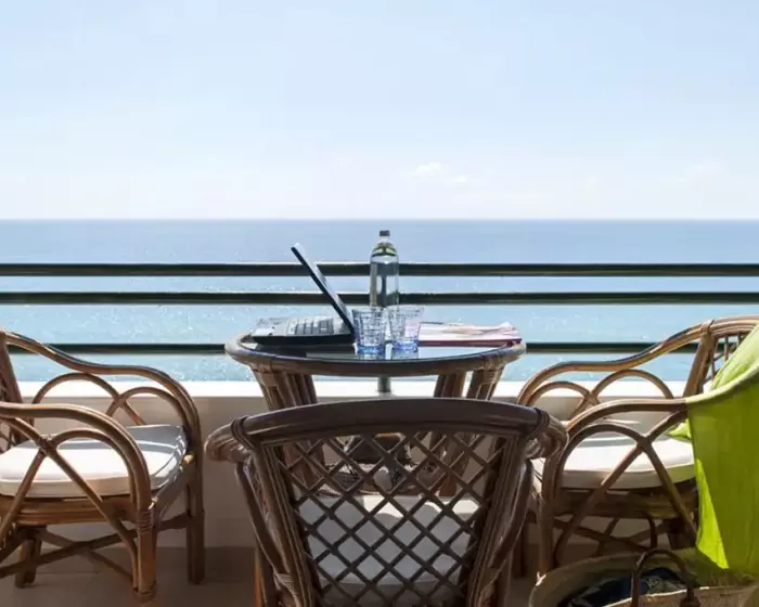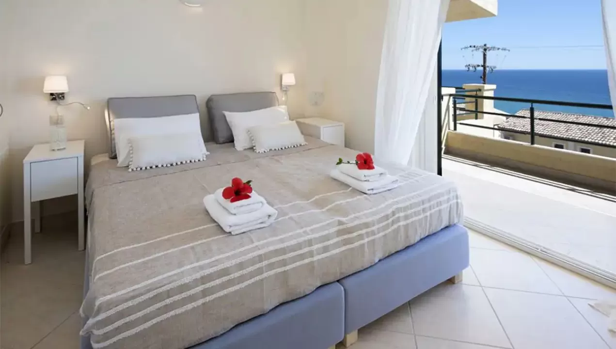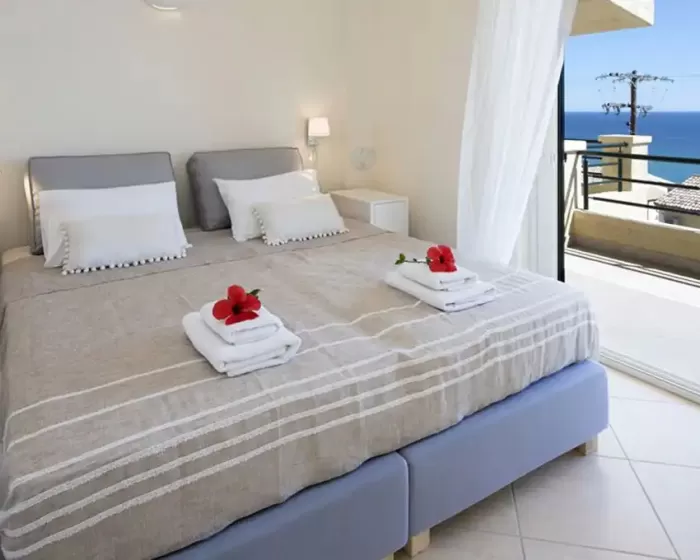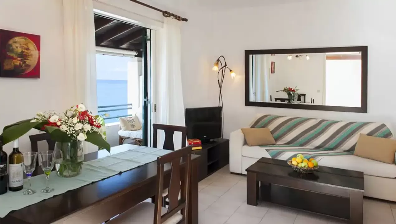 Ukupno 200 soba: Apartments 1-Bedroom Sea View (~40 m²), Apartments 2-Bedrooms SV (~55 m²), Suites Luxury 1-Bedroom SV (~39-42 m²), Apartments Deluxe 2-Bedrooms SV (~90 m²).U sobama: opremljena mini-kuhinja (2 ringle, mala pećnica, kuvalo za vodu, toster, aparat za kafu, posudje), klima-uredjaj, SAT TV, frižider, tuš, fen za kosu, sef (besplatan)- u većini soba, besplatan Wi-Fi, opremljen balkon / terasa.Apartment 1-Bedroom Sea View Spavaća soba sa bračnim krevetom ili 2 odvojena kreveta, dnevni boravak s kaučem na razvlačenje i opremljena mini kuhinja.Apartment 2-Bedrooms Sea View Dnevna soba sa kuhinjom, kauč, spavaća soba sa bračnim krevetom, druga spavaća soba sa 2 odvojena kreveta.Suite Luxury 1-Bedroom Sea View Dnevni boravak, kuhinja, otvoreni prostor sa trpezarijom, kauč, spavaća soba sa bračnim krevetom ili 2 odvojena kreveta.Apartment Deluxe 2-Bedrooms Sea View Dnevni boravak sa kuhinjom i trpezarijom otvoren plan, spavaća soba sa bračnim krevetom, druga spavaća soba sa 2 odvojena kreveta. U spavaćim sobama postoje ventilatori.